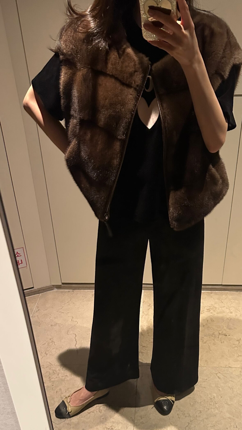 mink hood crop vest (brown) + heart terry t (black) + [made] lounge pants (black)