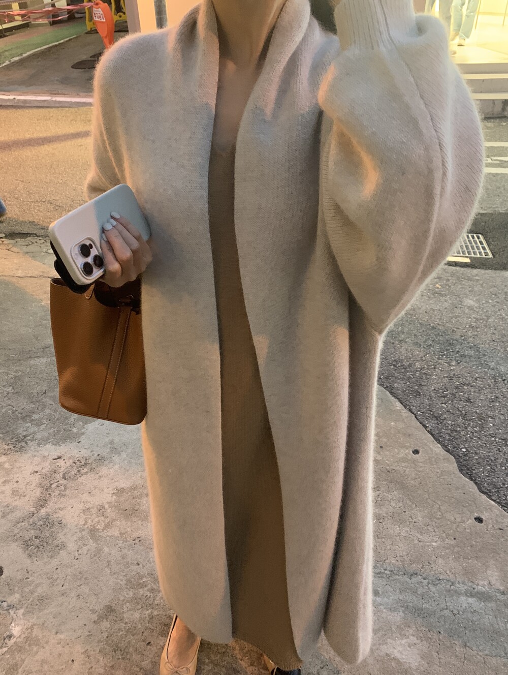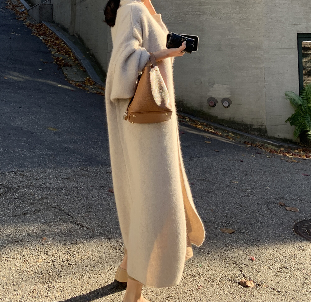 raccoon long cardigan + v-long knit ops (camel)
