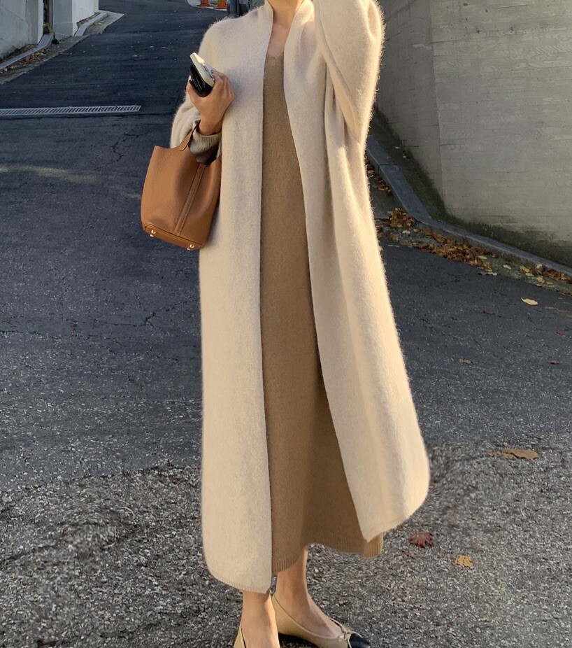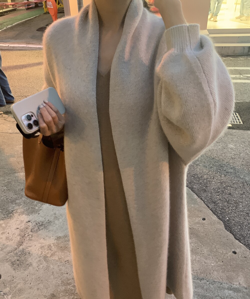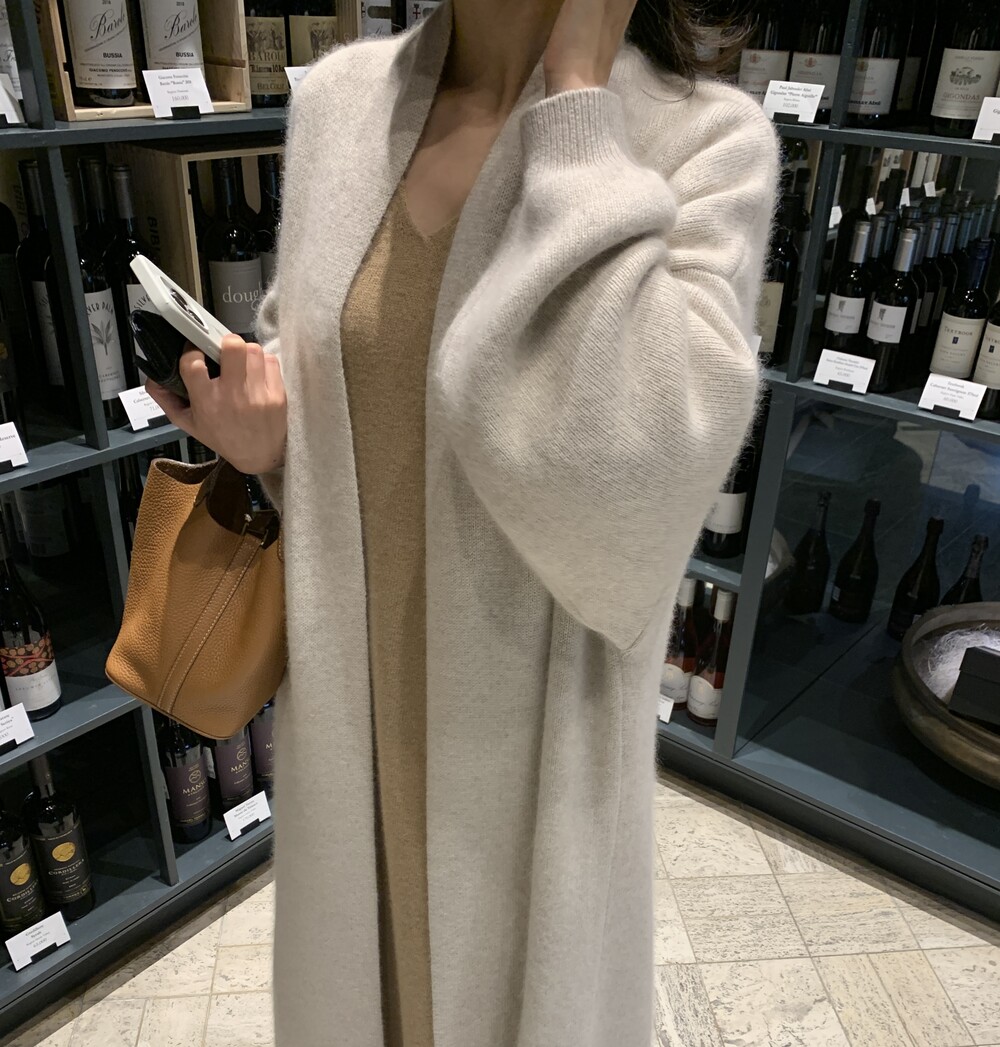 롱한 기장의 라쿤 가디건입니다.