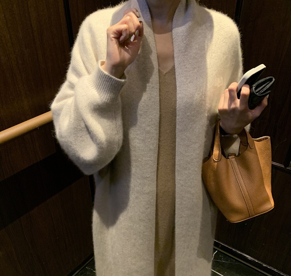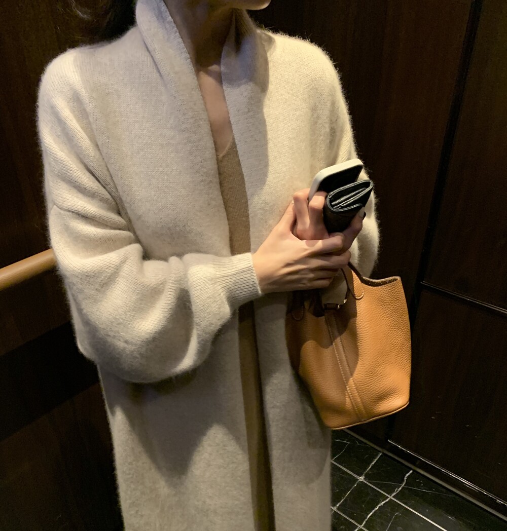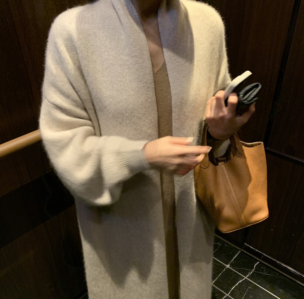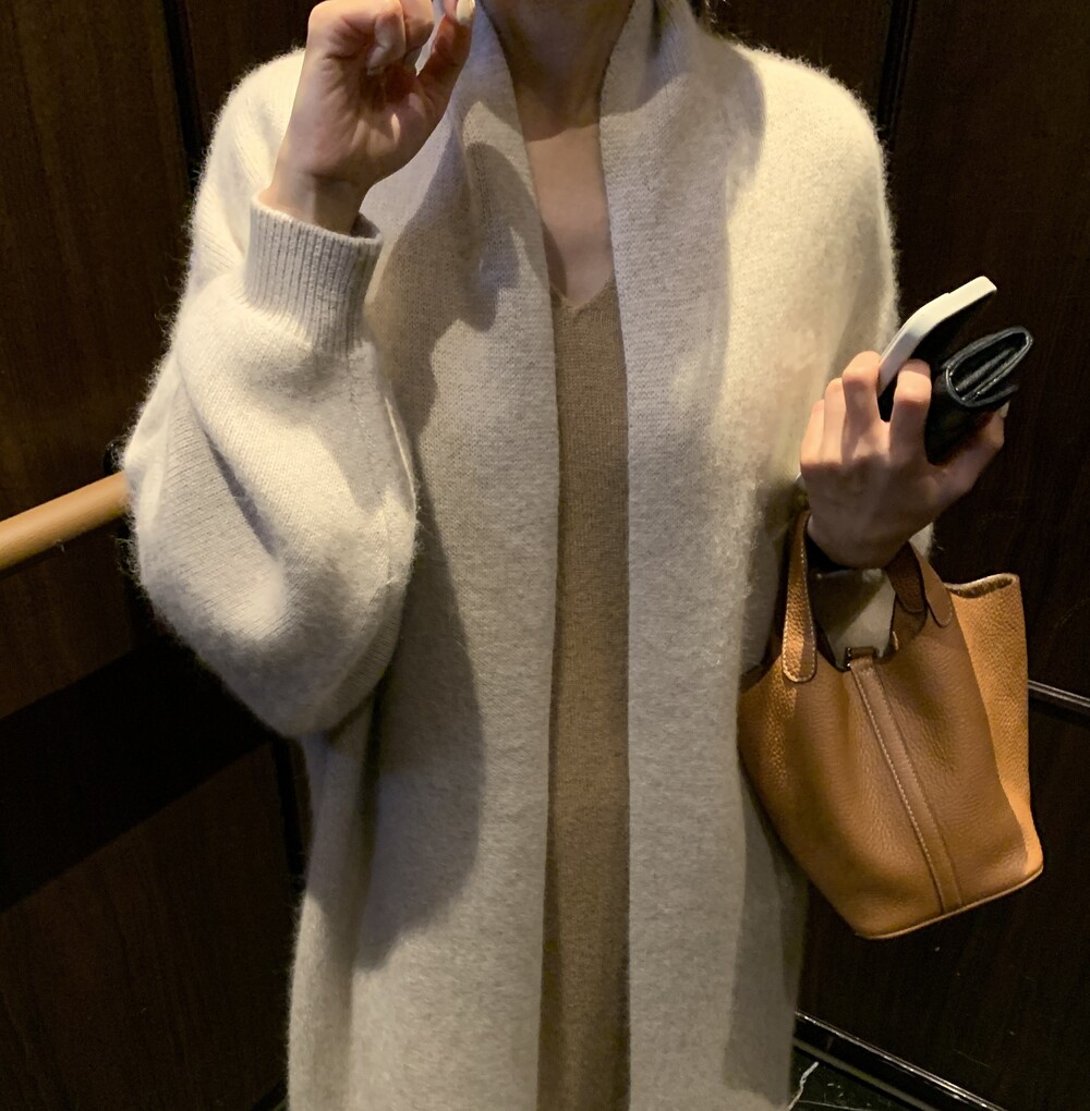 롱한 기장의 라쿤 가디건입니다.