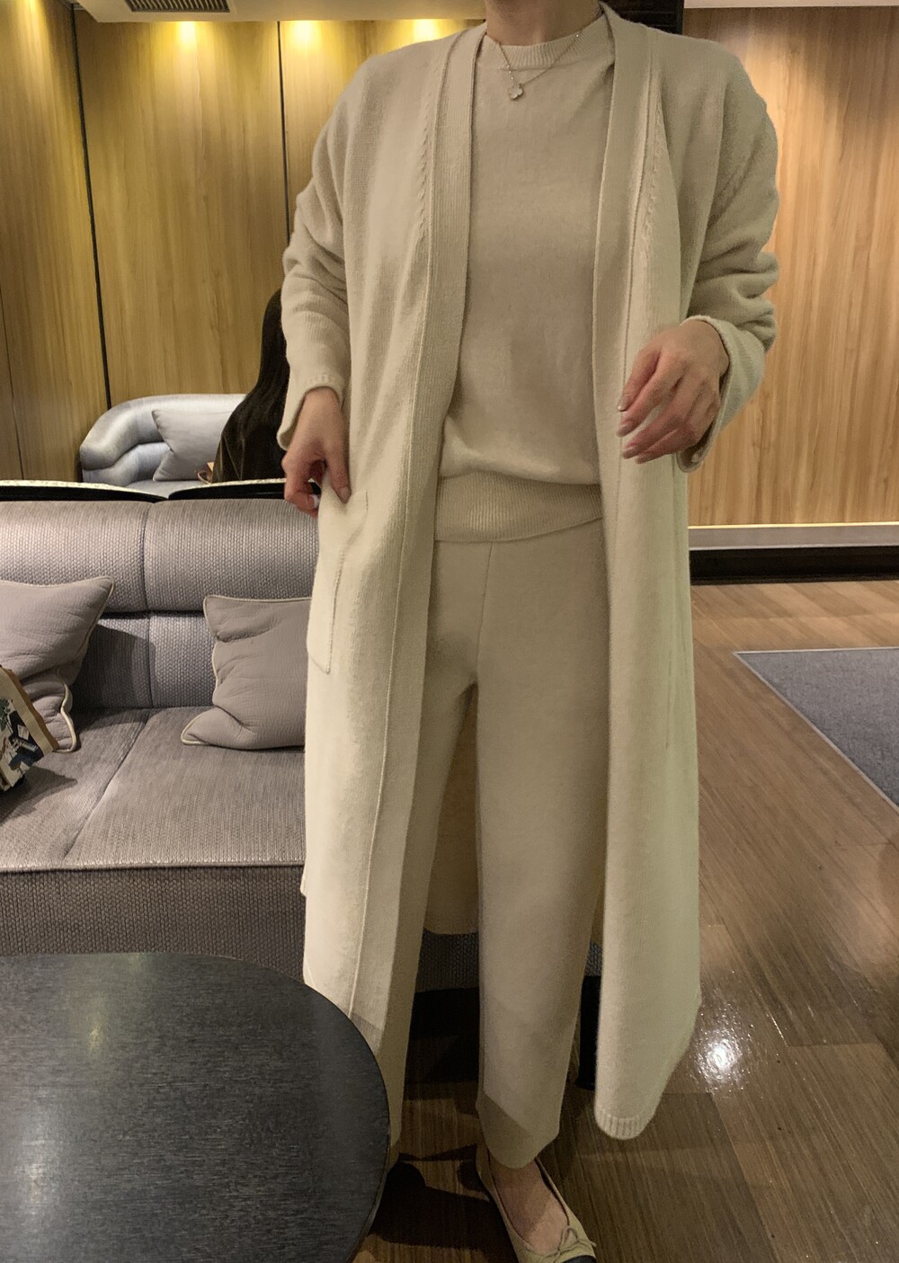 max long-midi cardigan (oatmeal) + max inner knit (oatmeal) + max semi-crop knitpants (oatmeal)