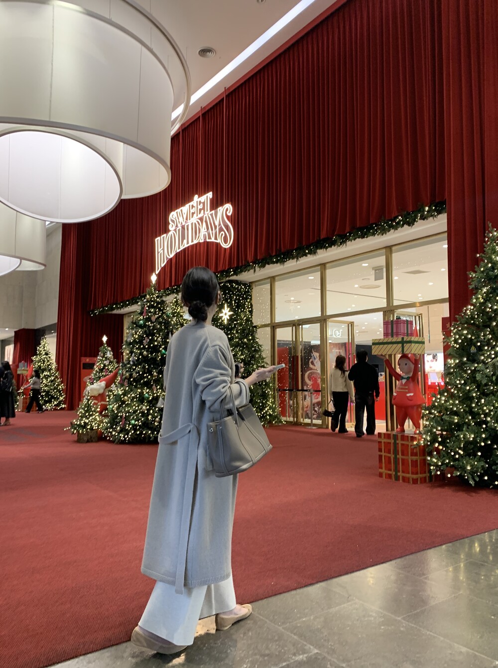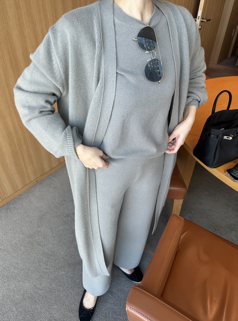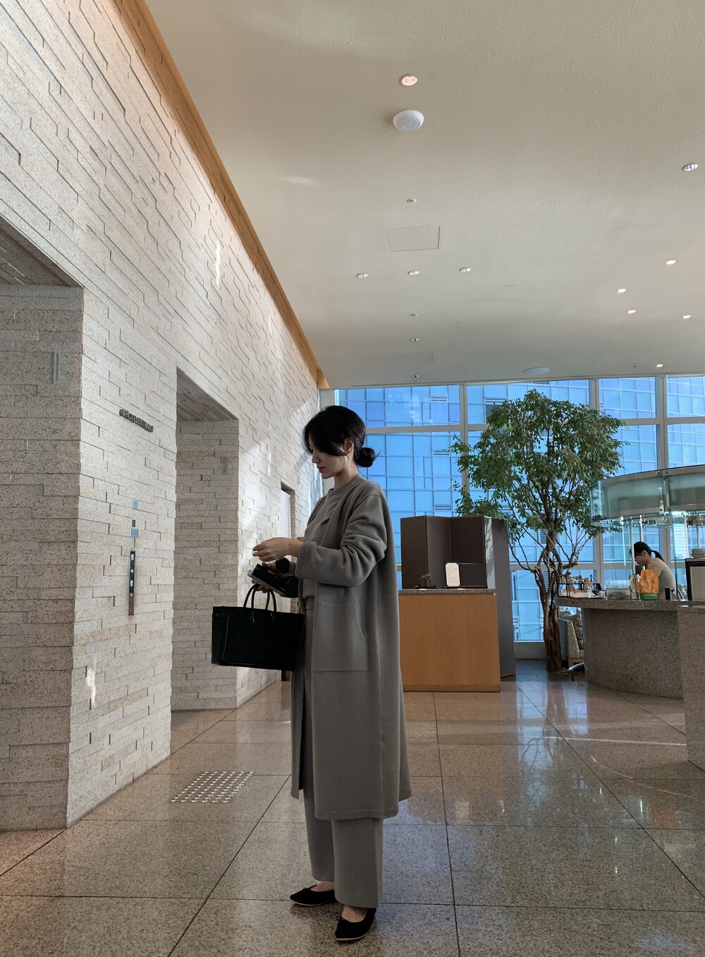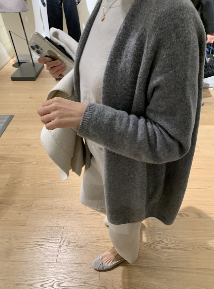 wholegarment mild cardigan (grey) + max inner knit (lightgrey) + max semi-crop knitpants (lightgrey) + suede flat shoes (grey)