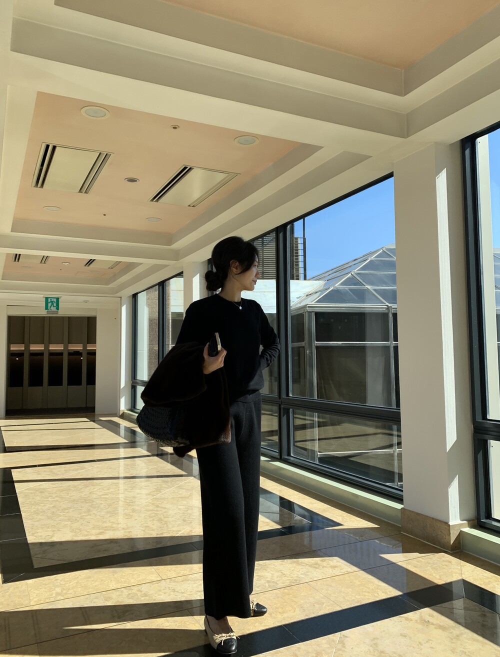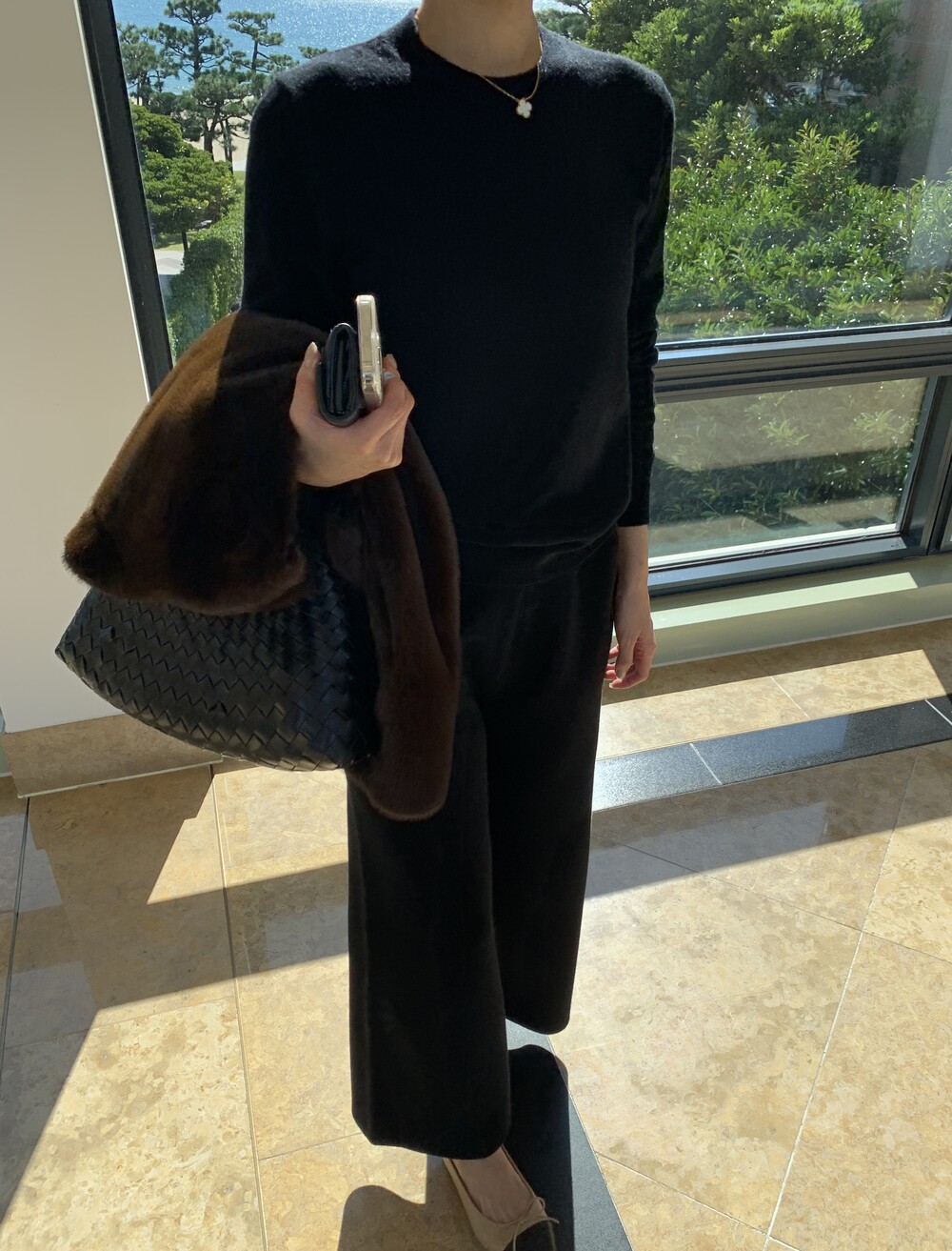 max inner knit (black) + max wide knitpants (black) + fall flat shoes (ivory)