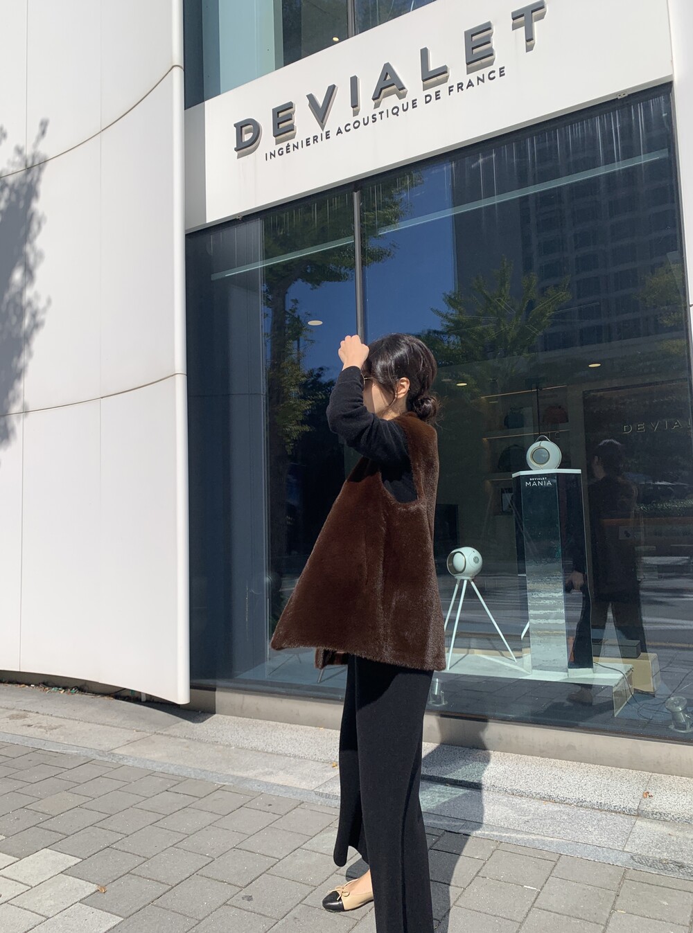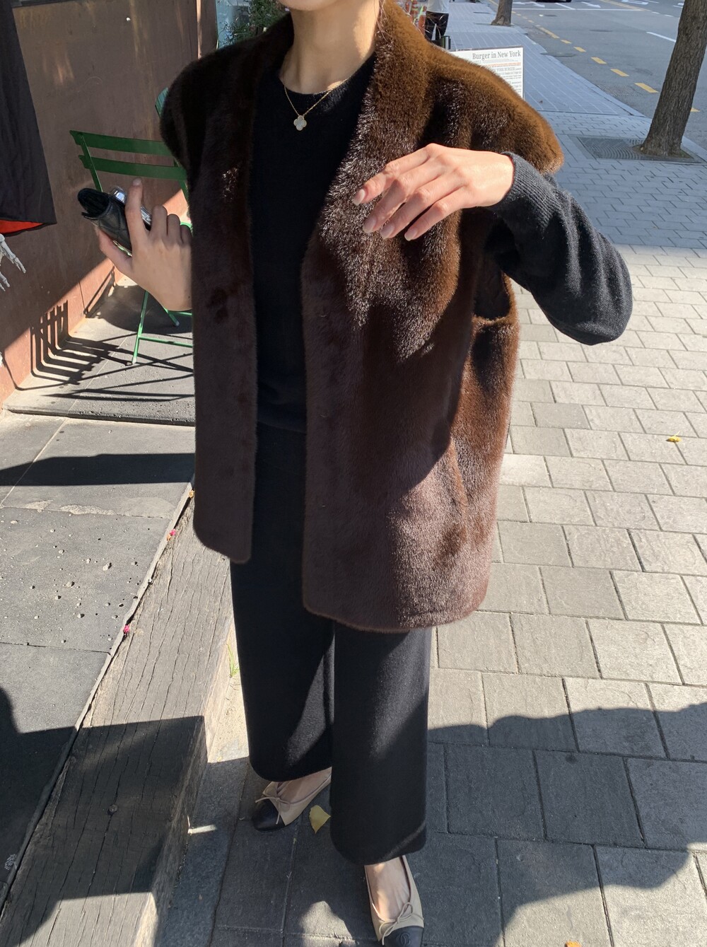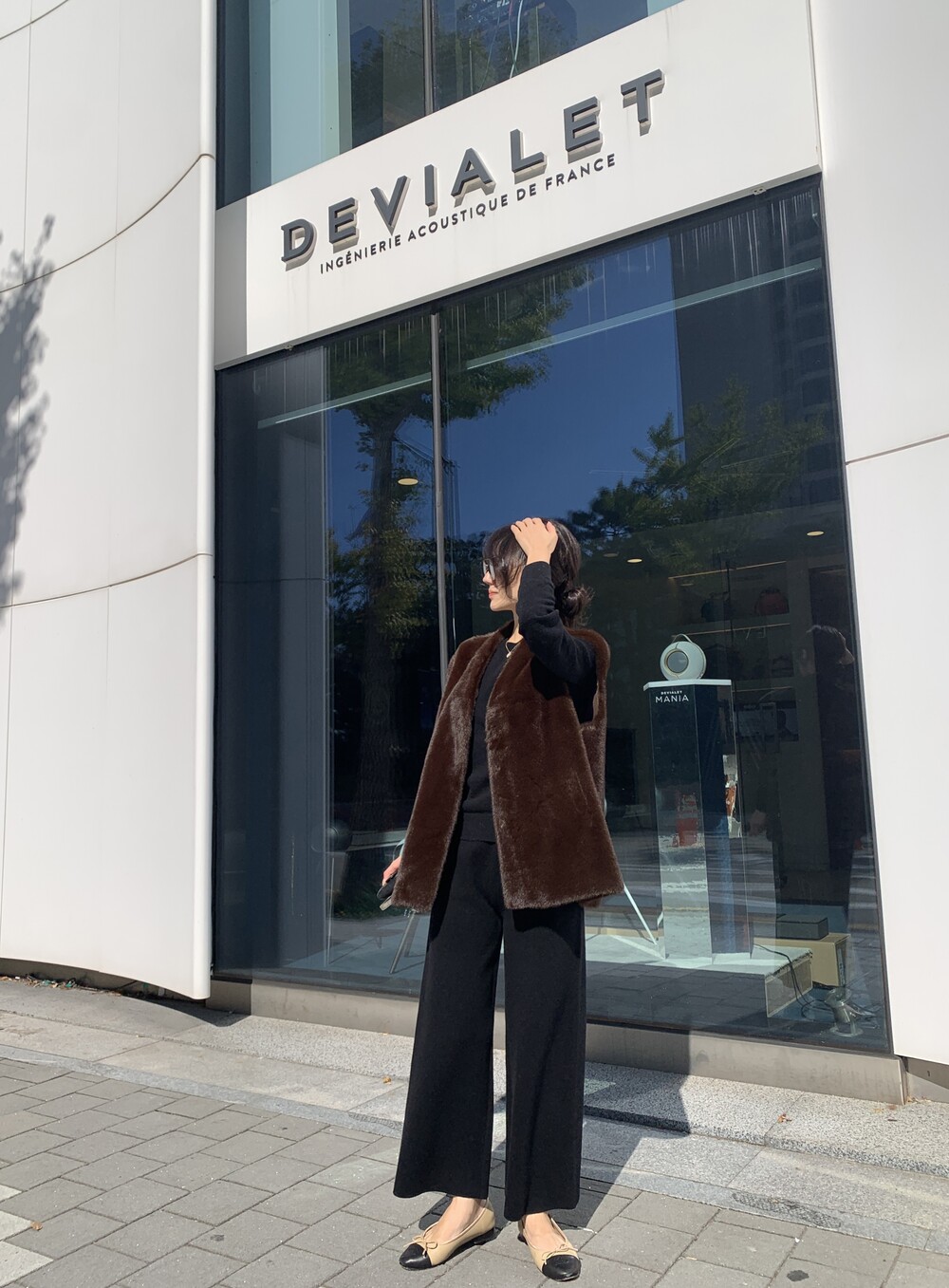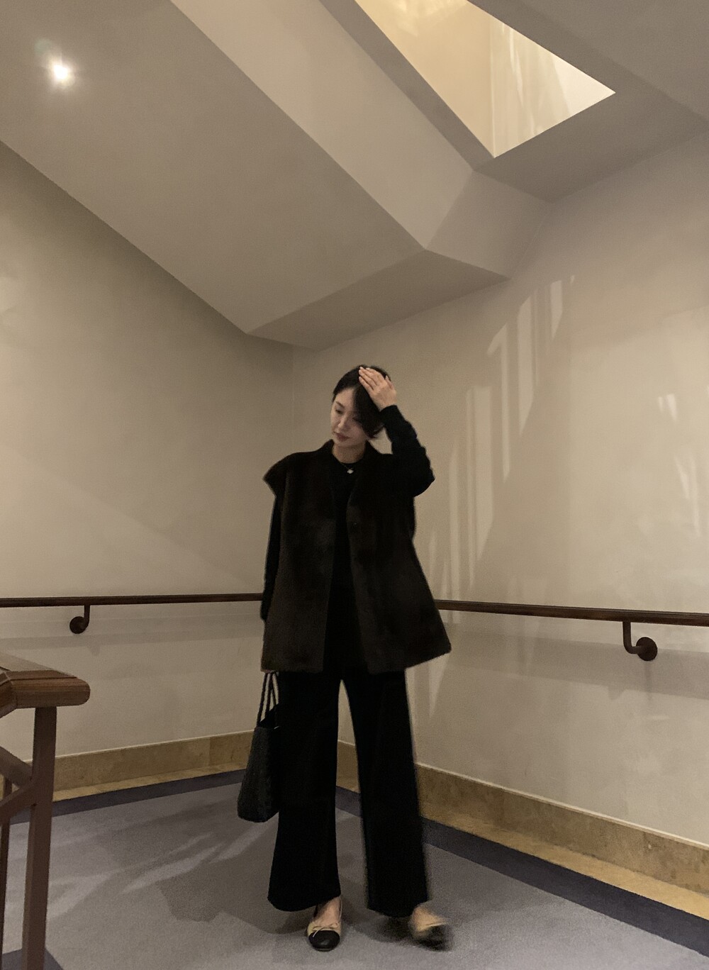 ecofur v vest + max inner knit (black) + max wide knitpants (black)