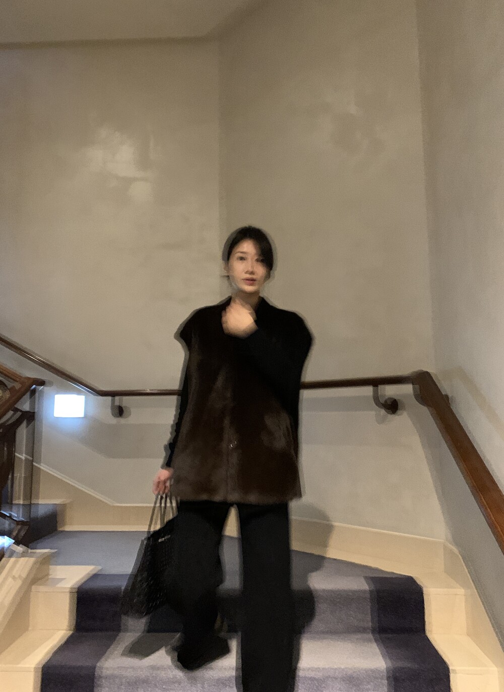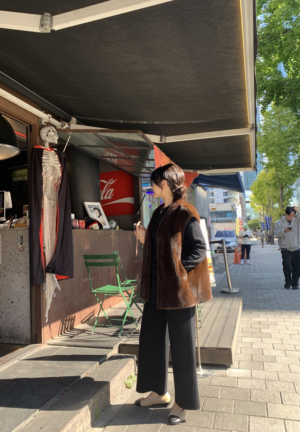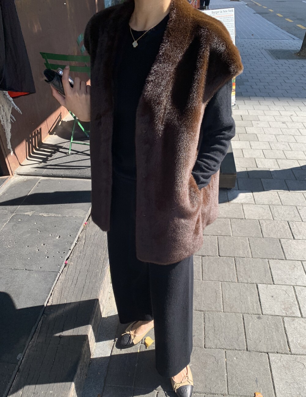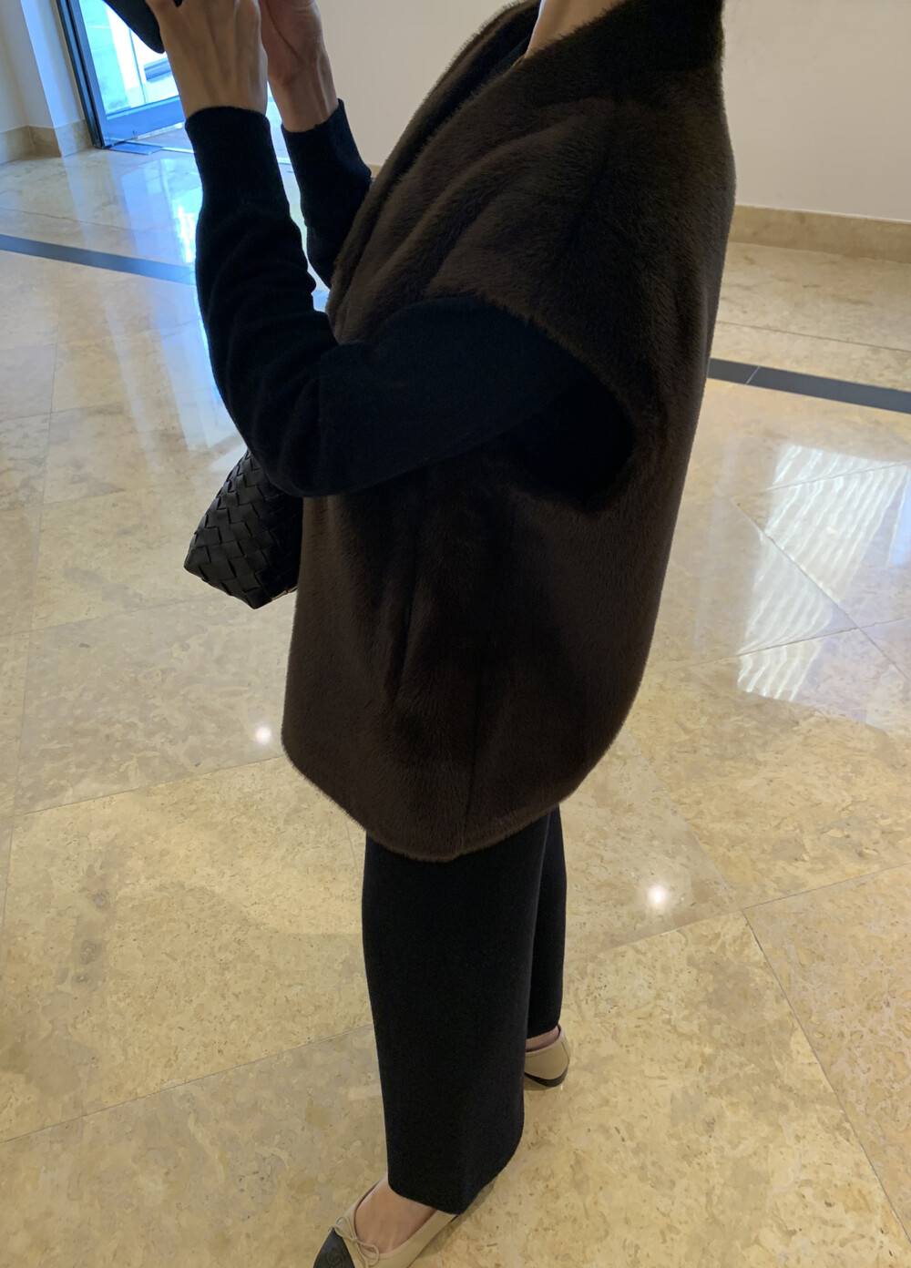 ecofur v vest + max inner knit (black) + max wide knitpants (black)
