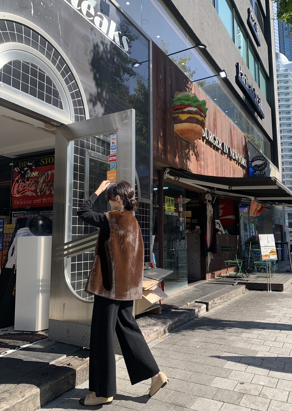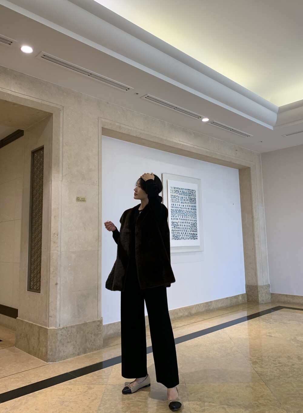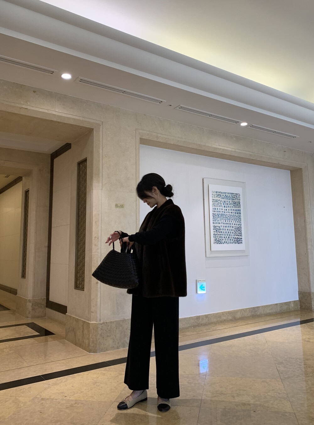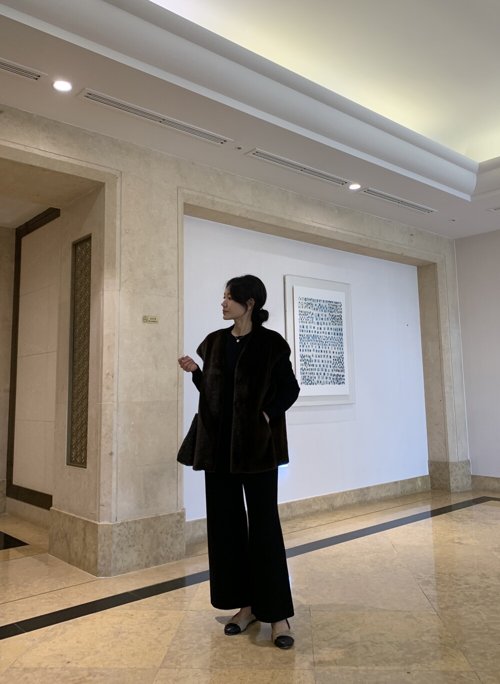 ecofur v vest + max inner knit (black) + max wide knitpants (black)