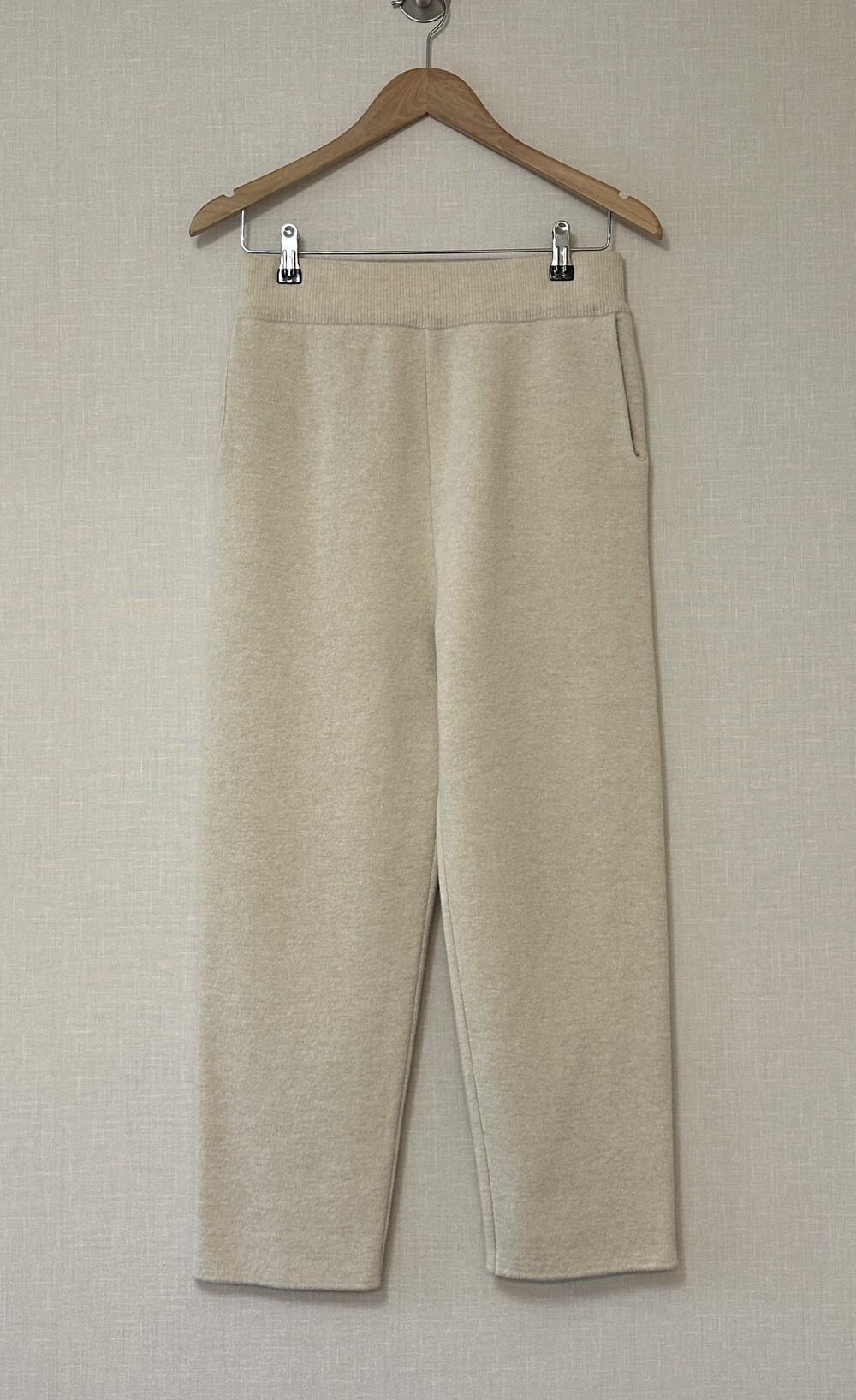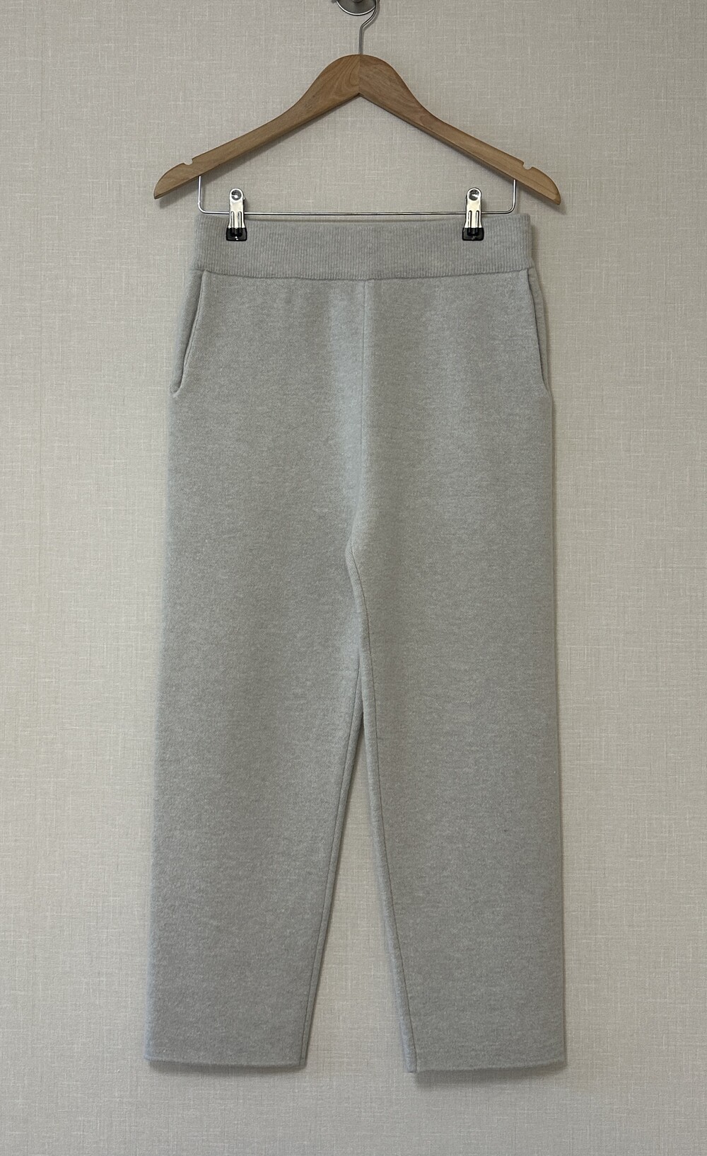살짝 핏되고 크롭한 기장의 니트팬츠입니다.