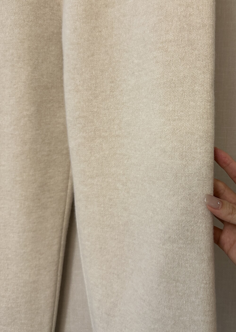 이번에 함께 진행하는 와이드한 니트팬츠보다는 붙는 핏이랍니다.
