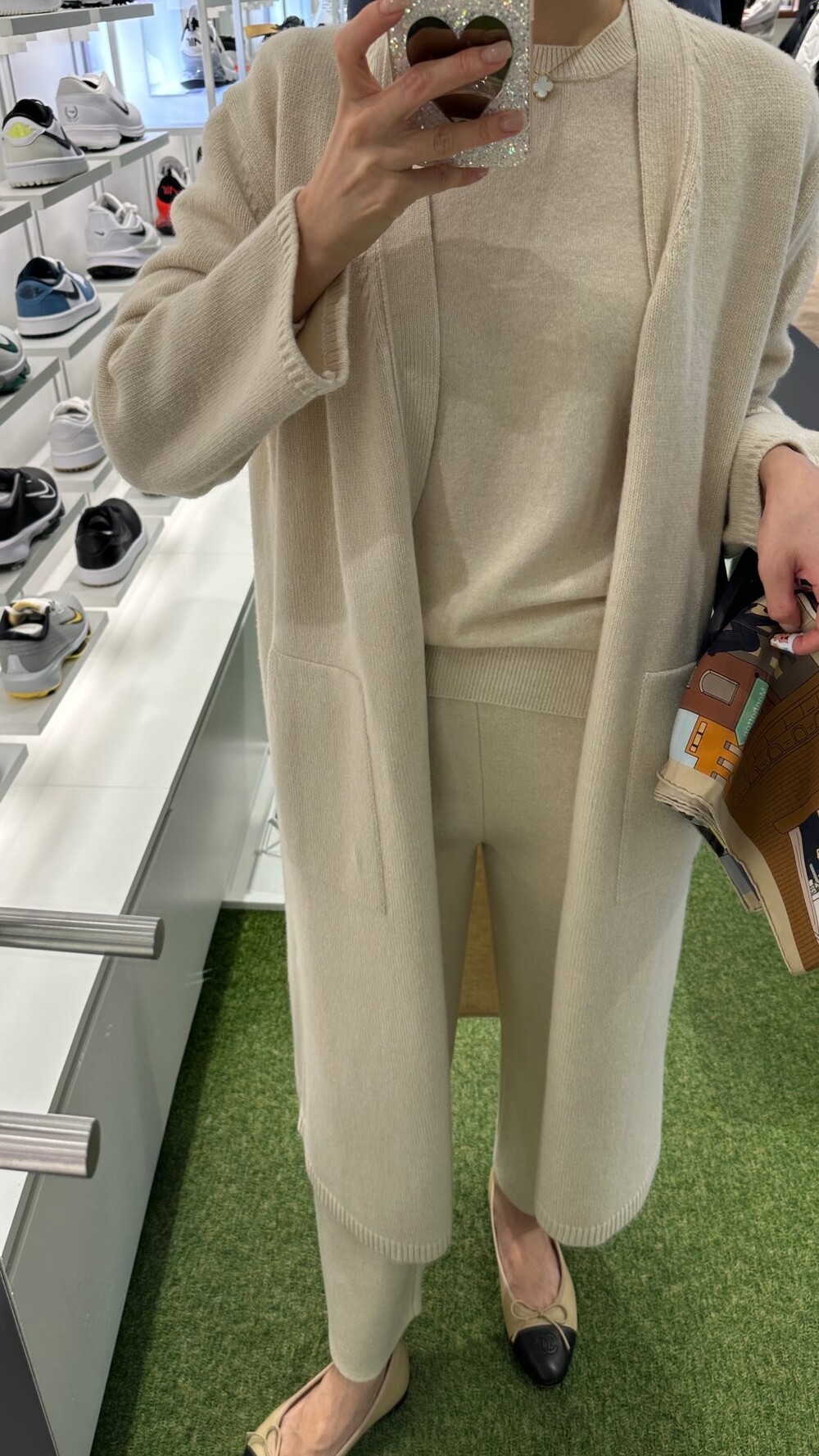 max long-midi cardigan (oatmeal) + max inner knit (oatmeal) + max semi-crop knitpants (oatmeal)