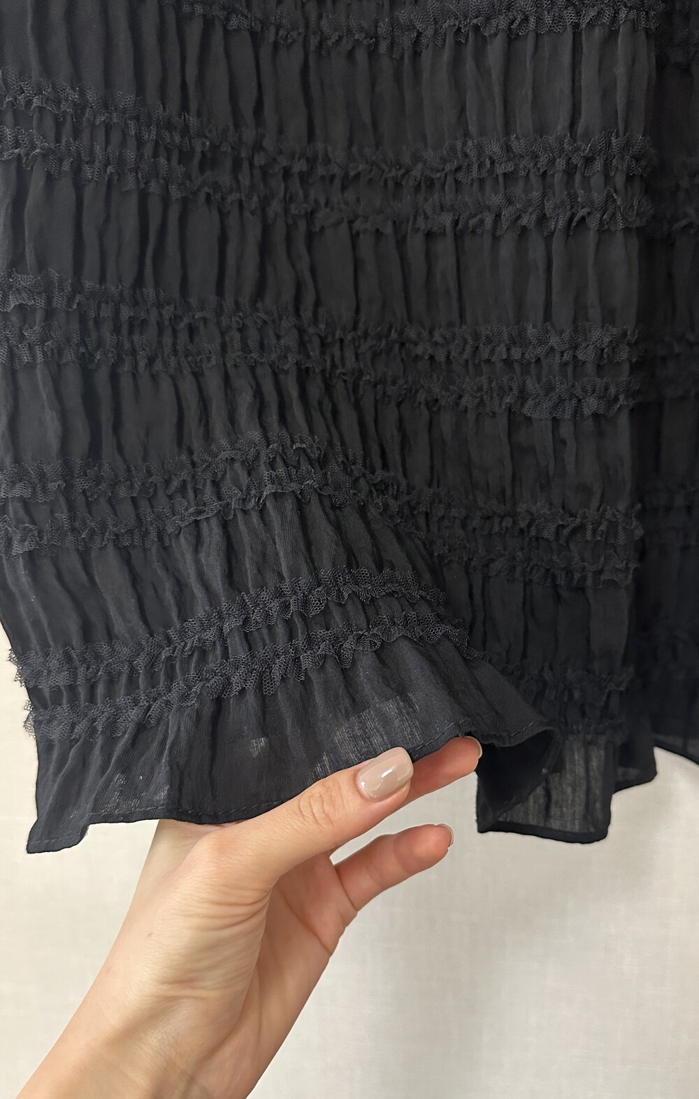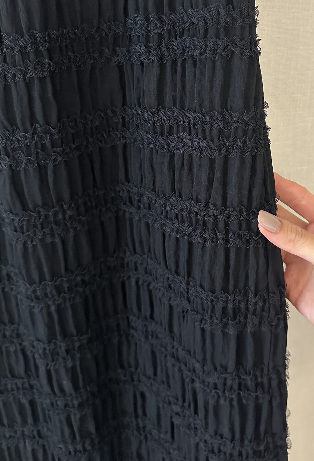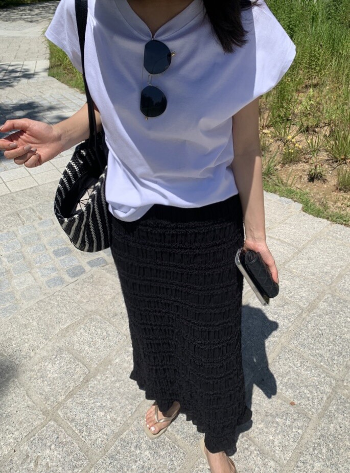 프릴이 촘촘하게 들어간 롱스커트입니다.