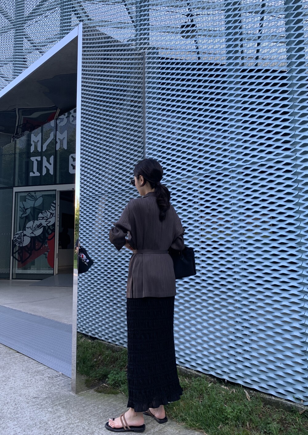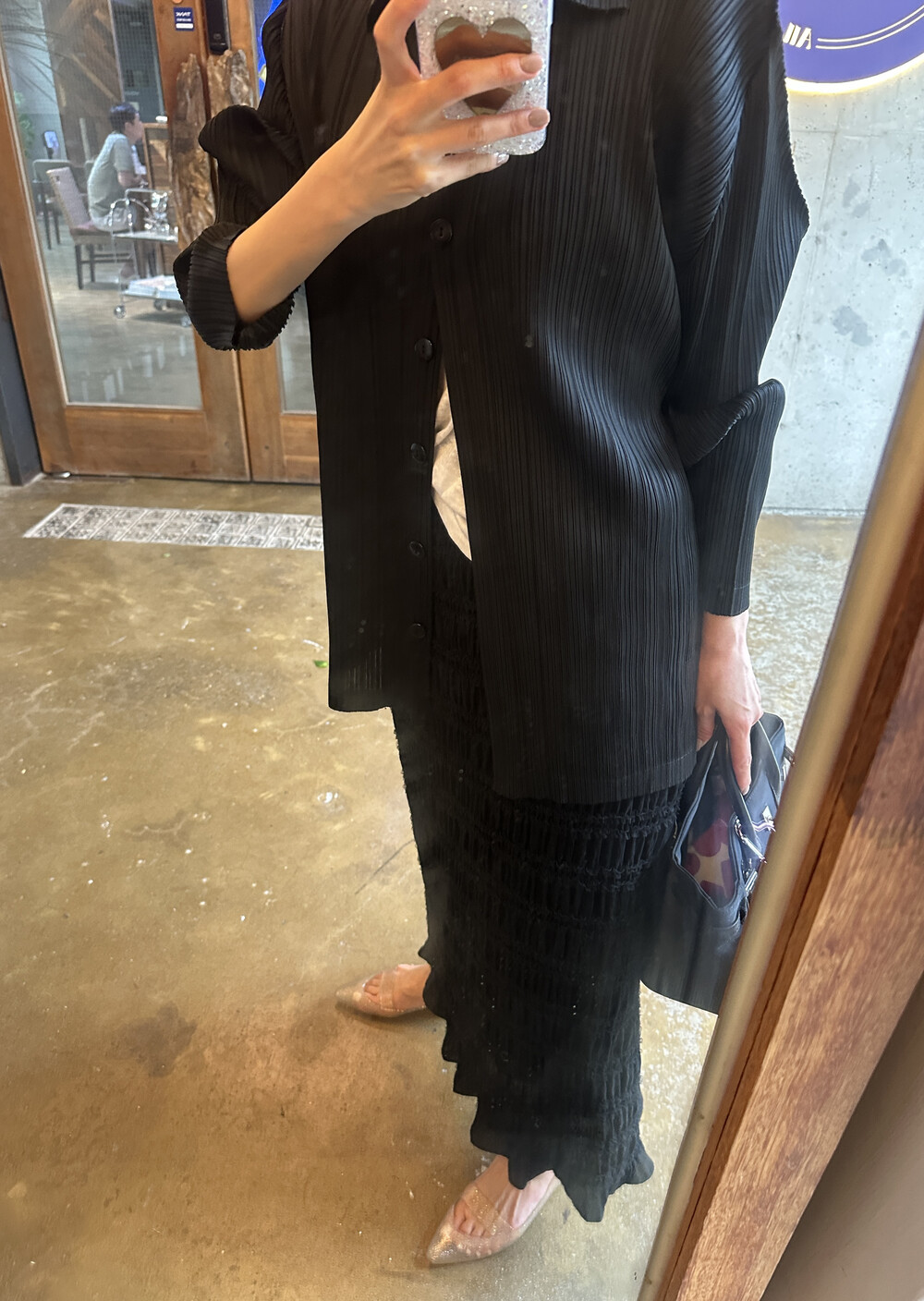 pleats shirt cardigan (deepbrown) + pleats mist camisole (deepbrown) + monde frill longskirt