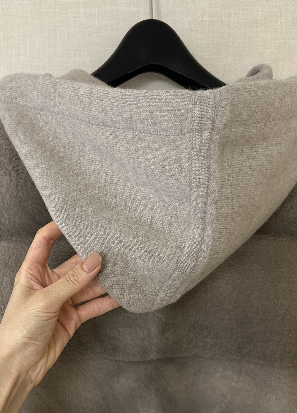 울 캐시미어 블렌딩된 니트 후드가 달려있는데
