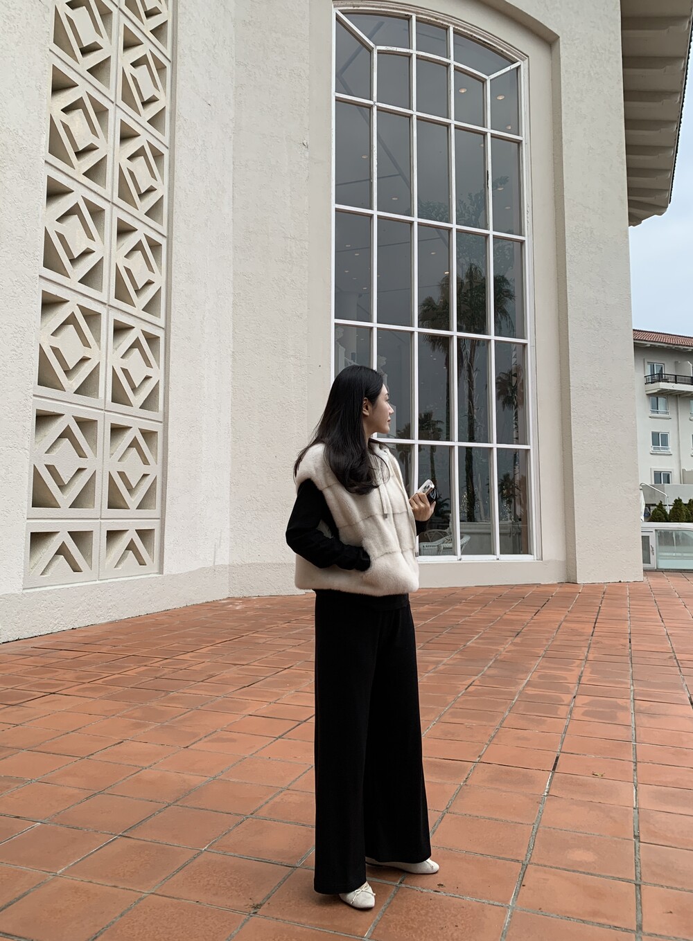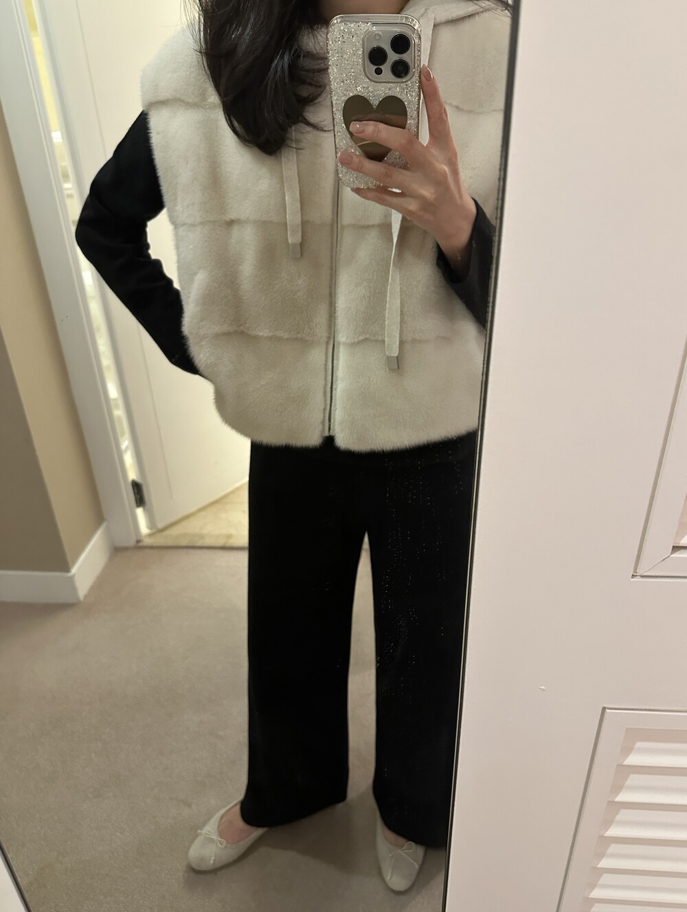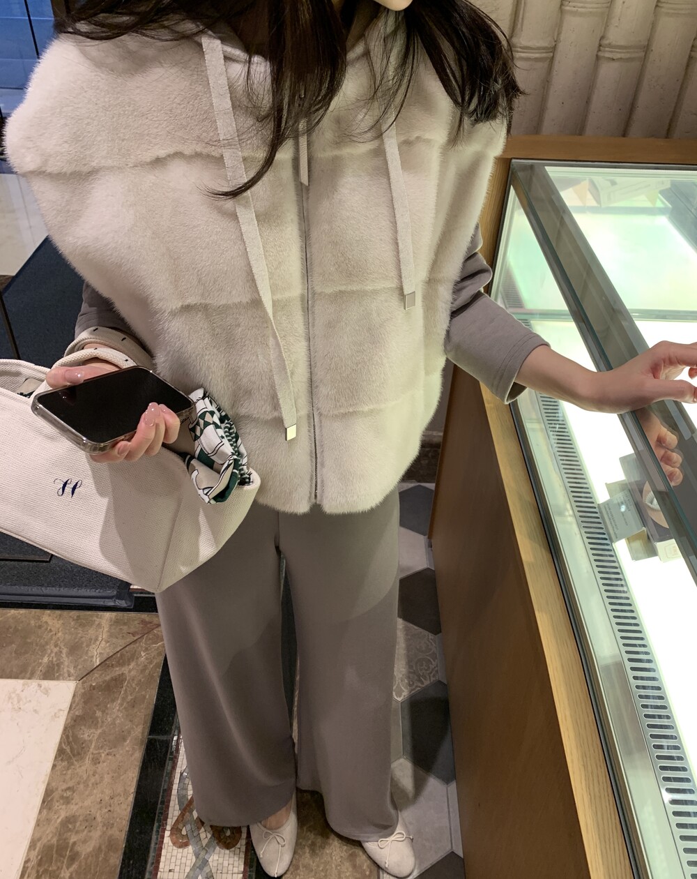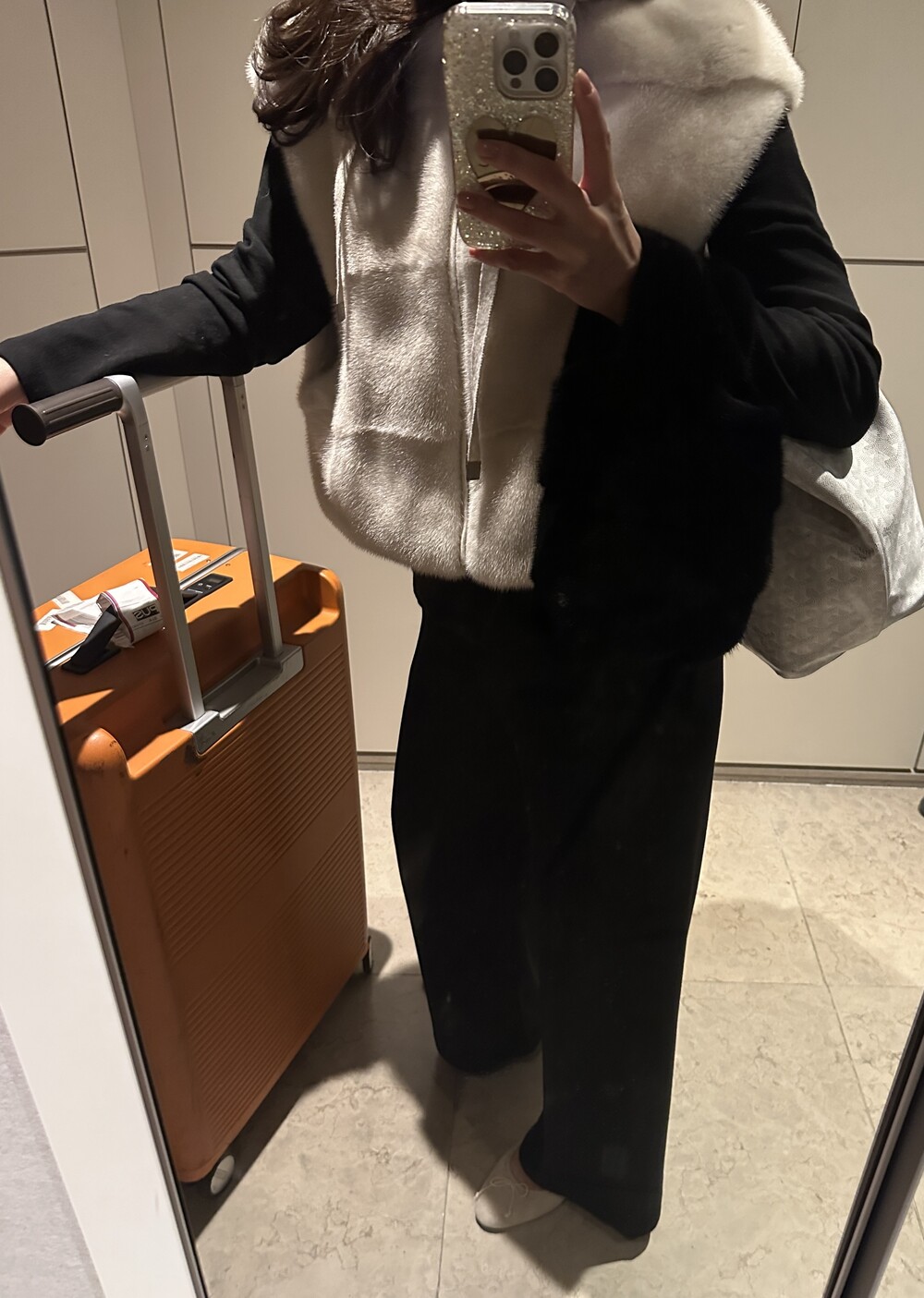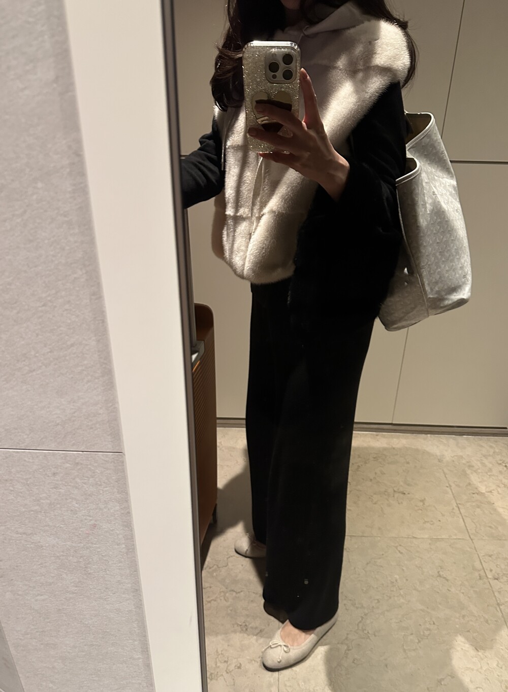 라운지 셋업에 요 밍크베스트 입고 갔었어요 저 :) 🤍🤍