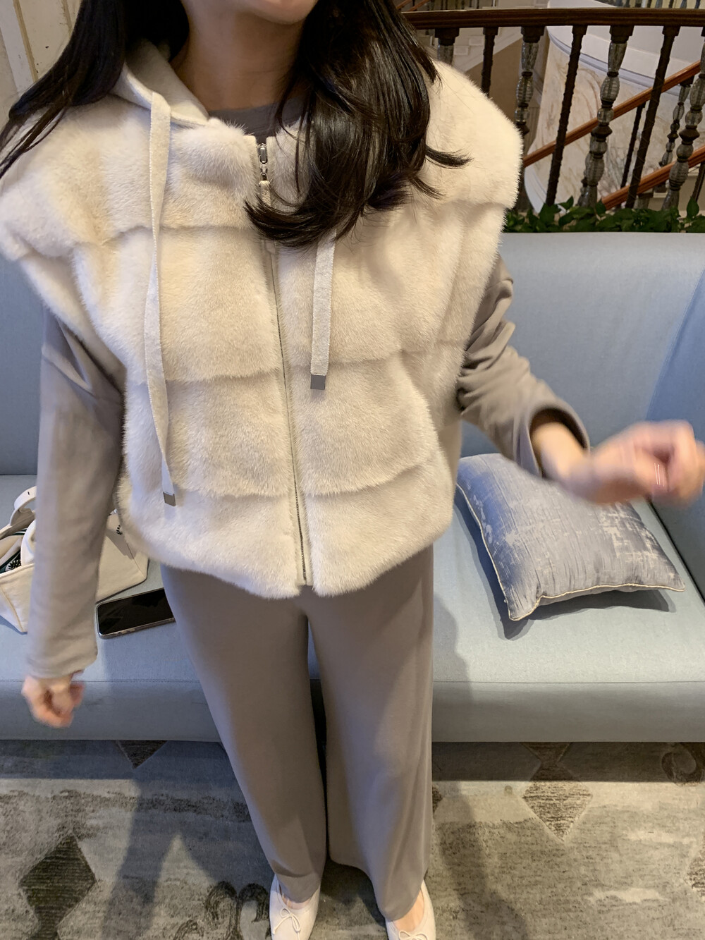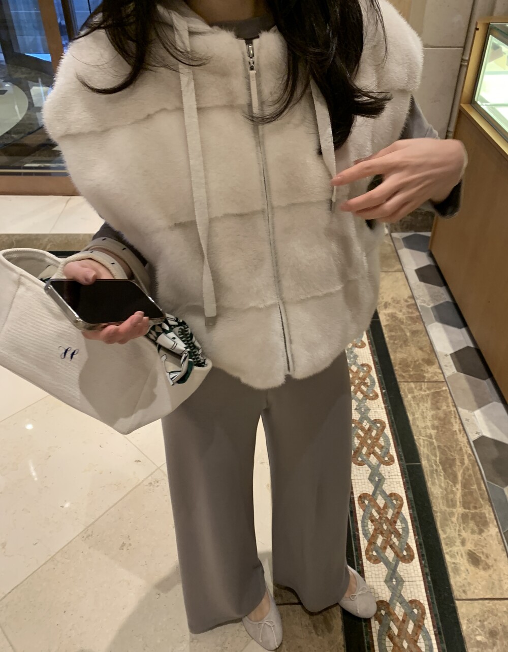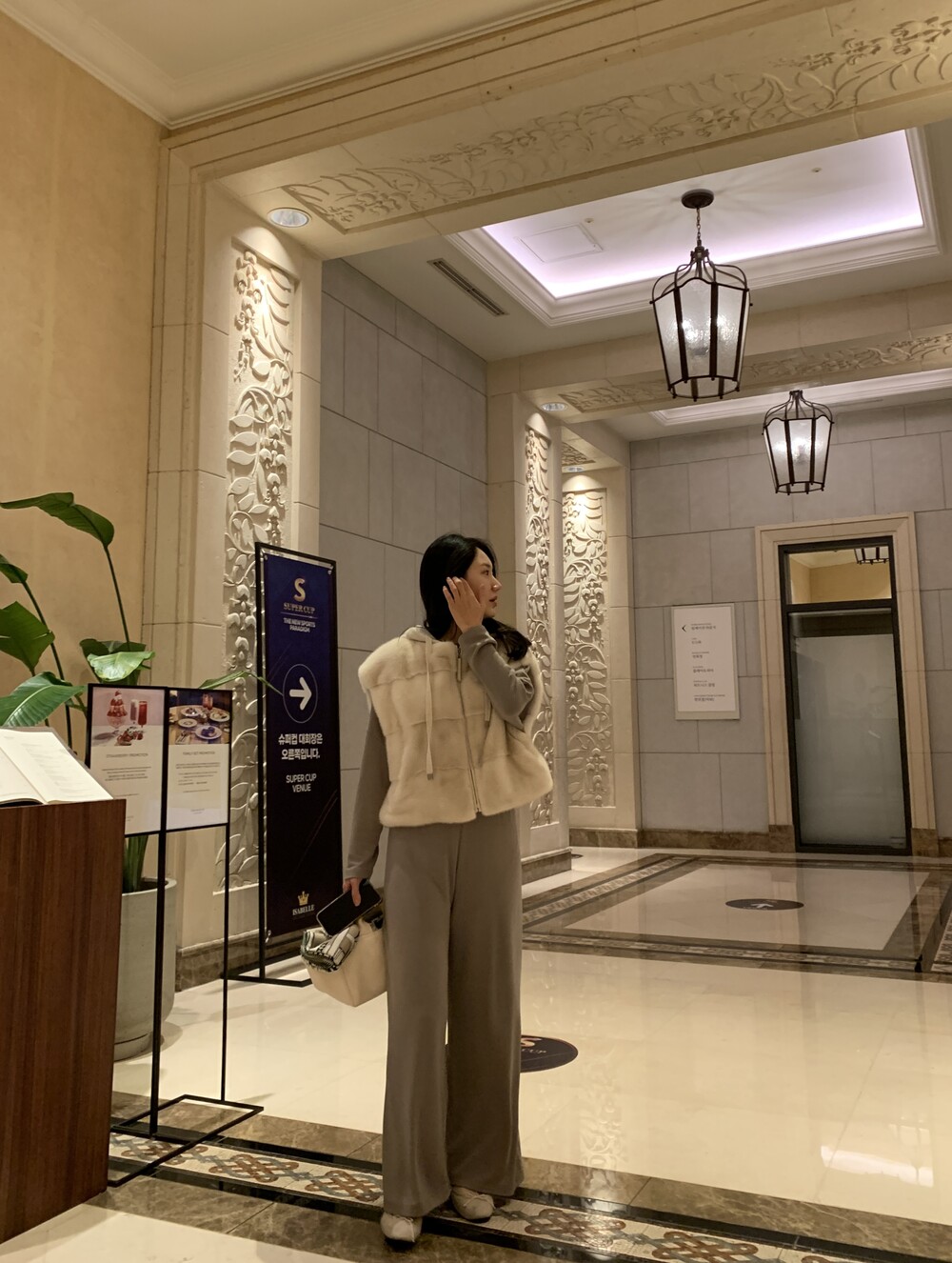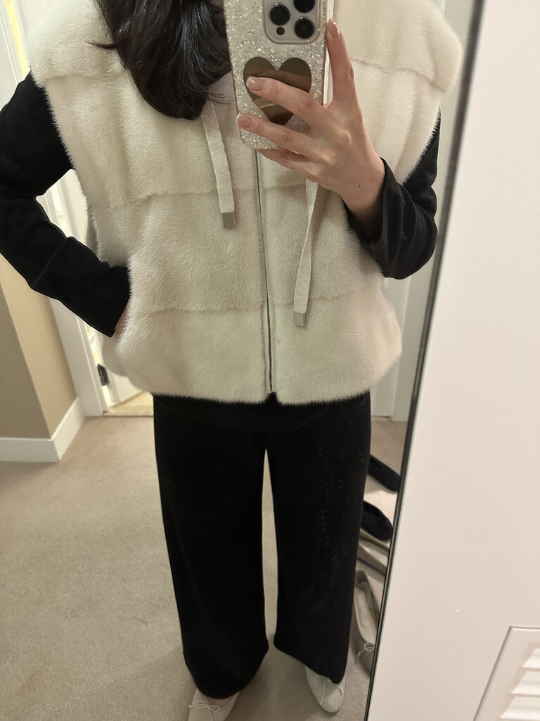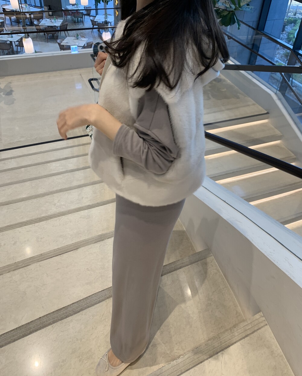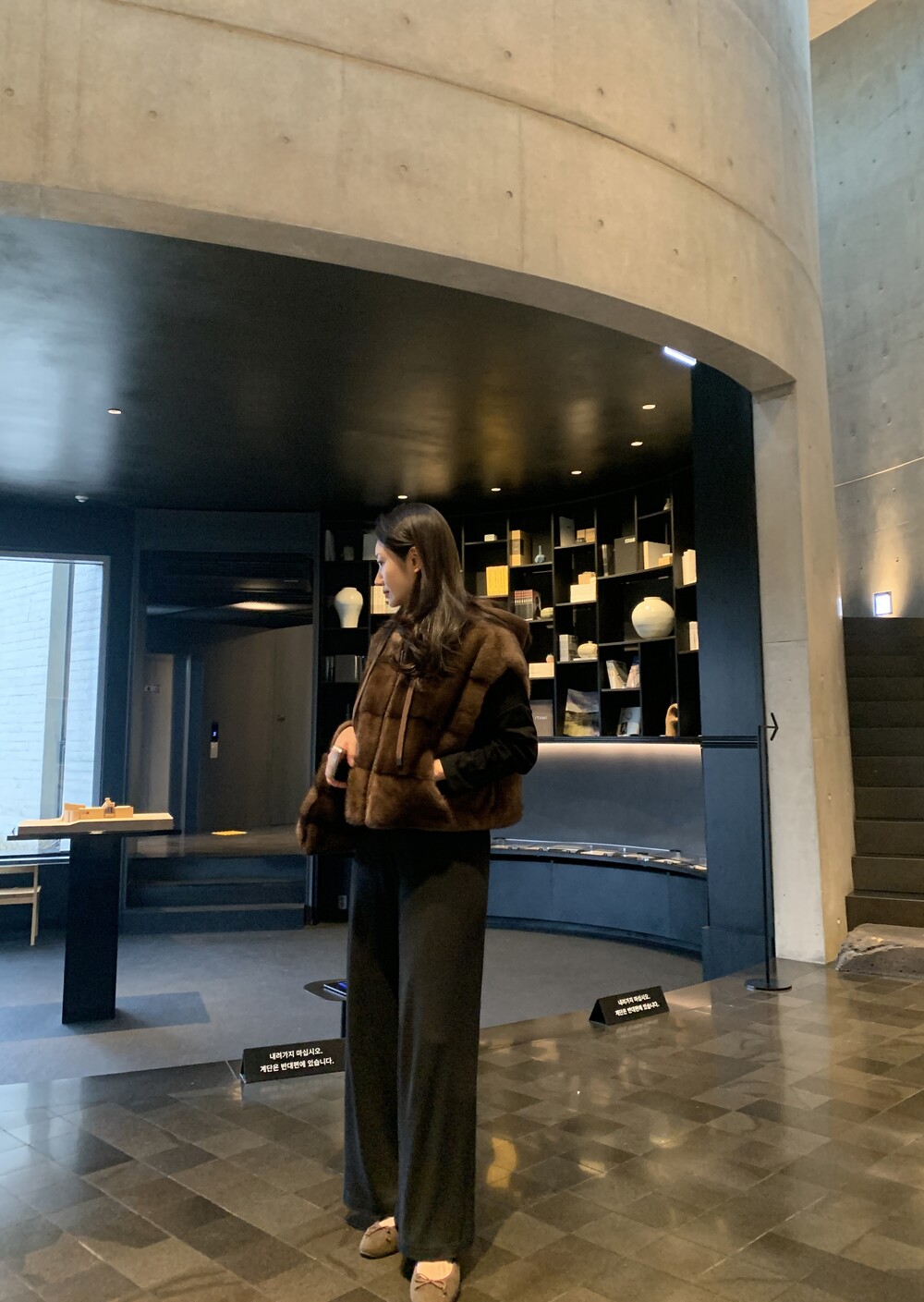 라운지 셋업에 요 밍크베스트 입고 갔었어요 저 :) 🤍🤍