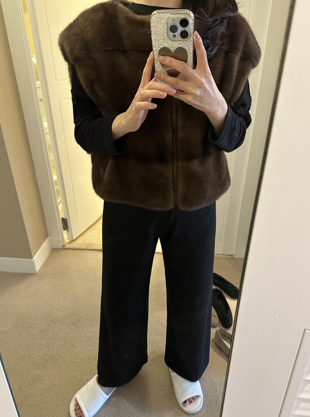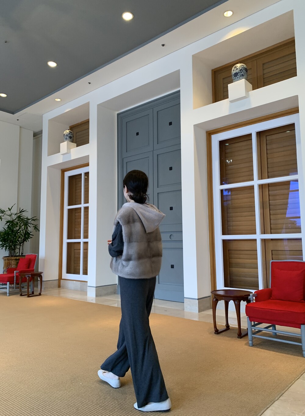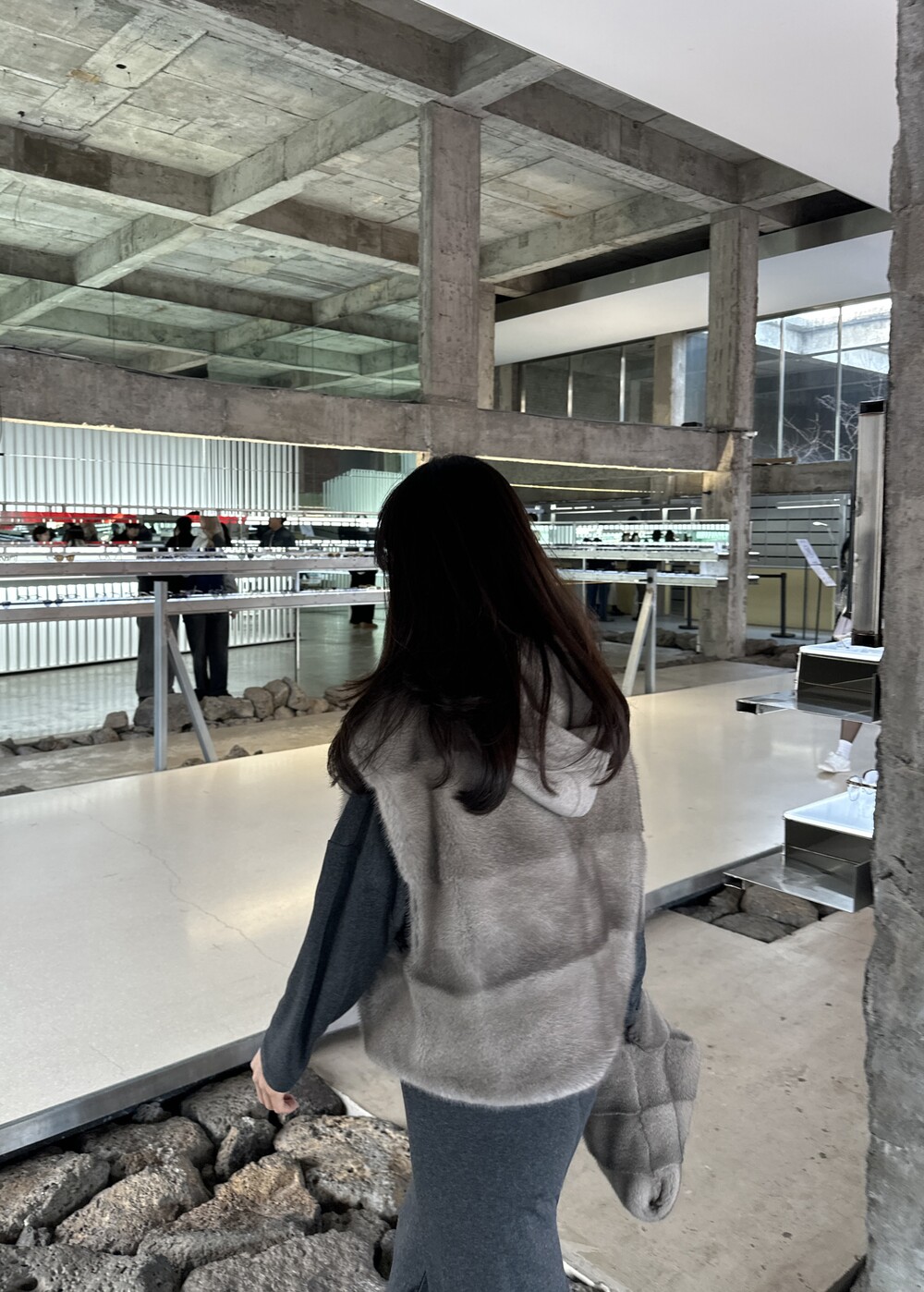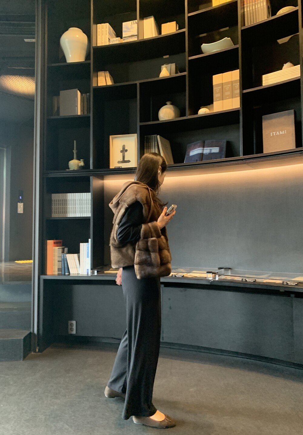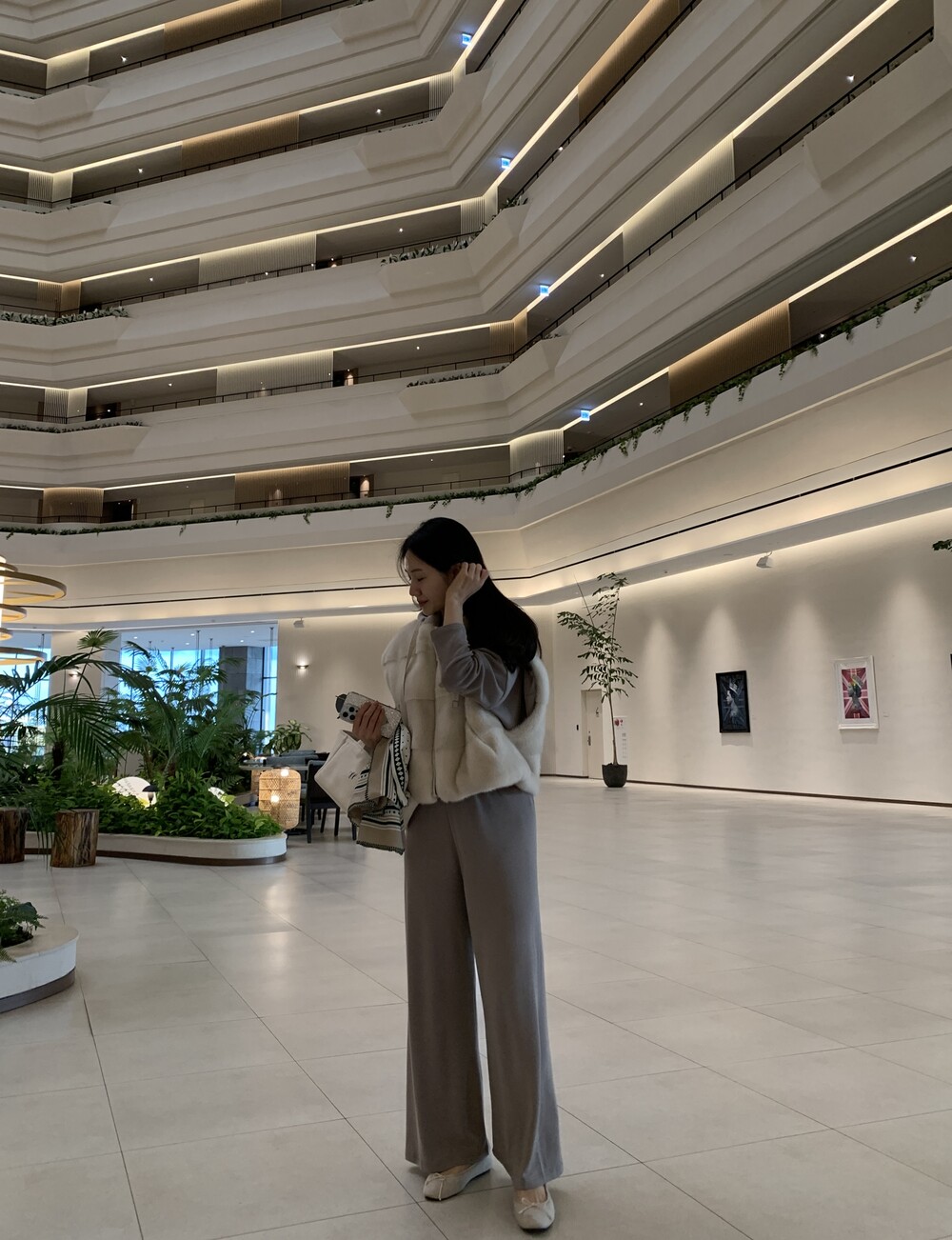 라운지 셋업에 요 밍크베스트 입고 갔었어요 저 :) 🤍🤍