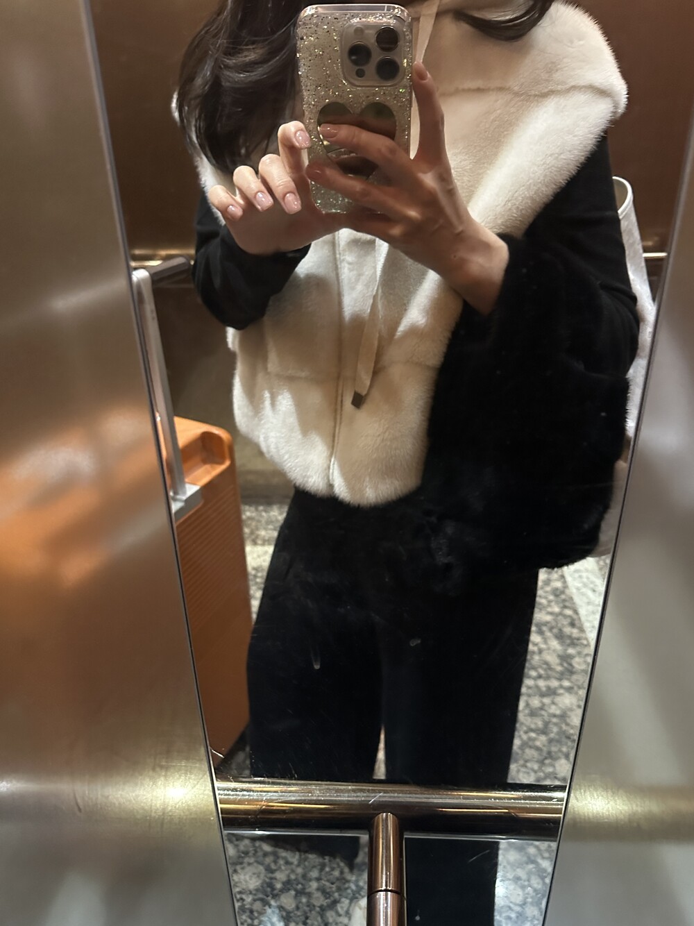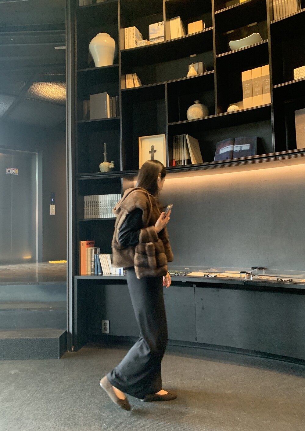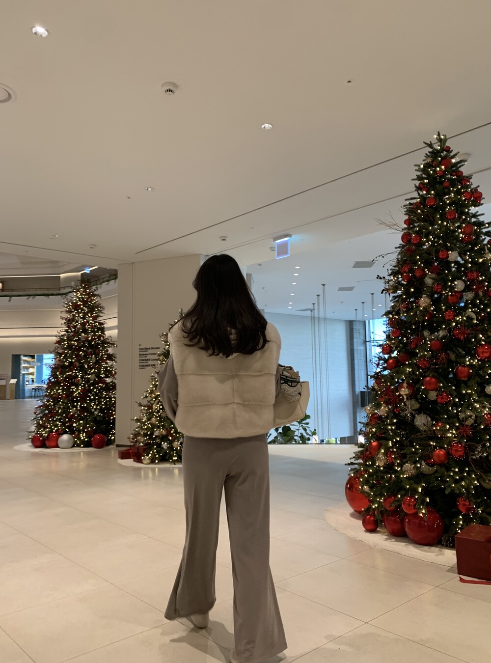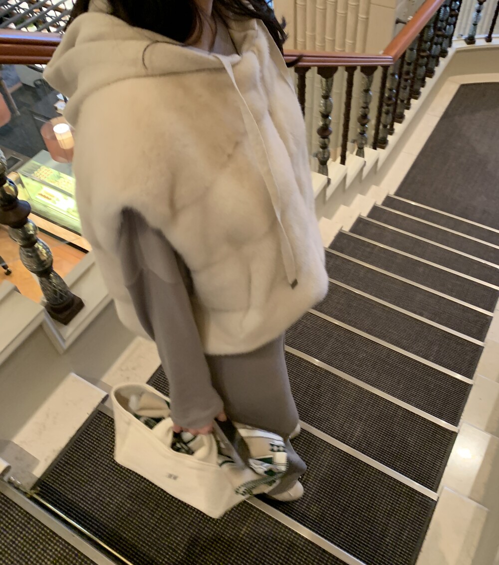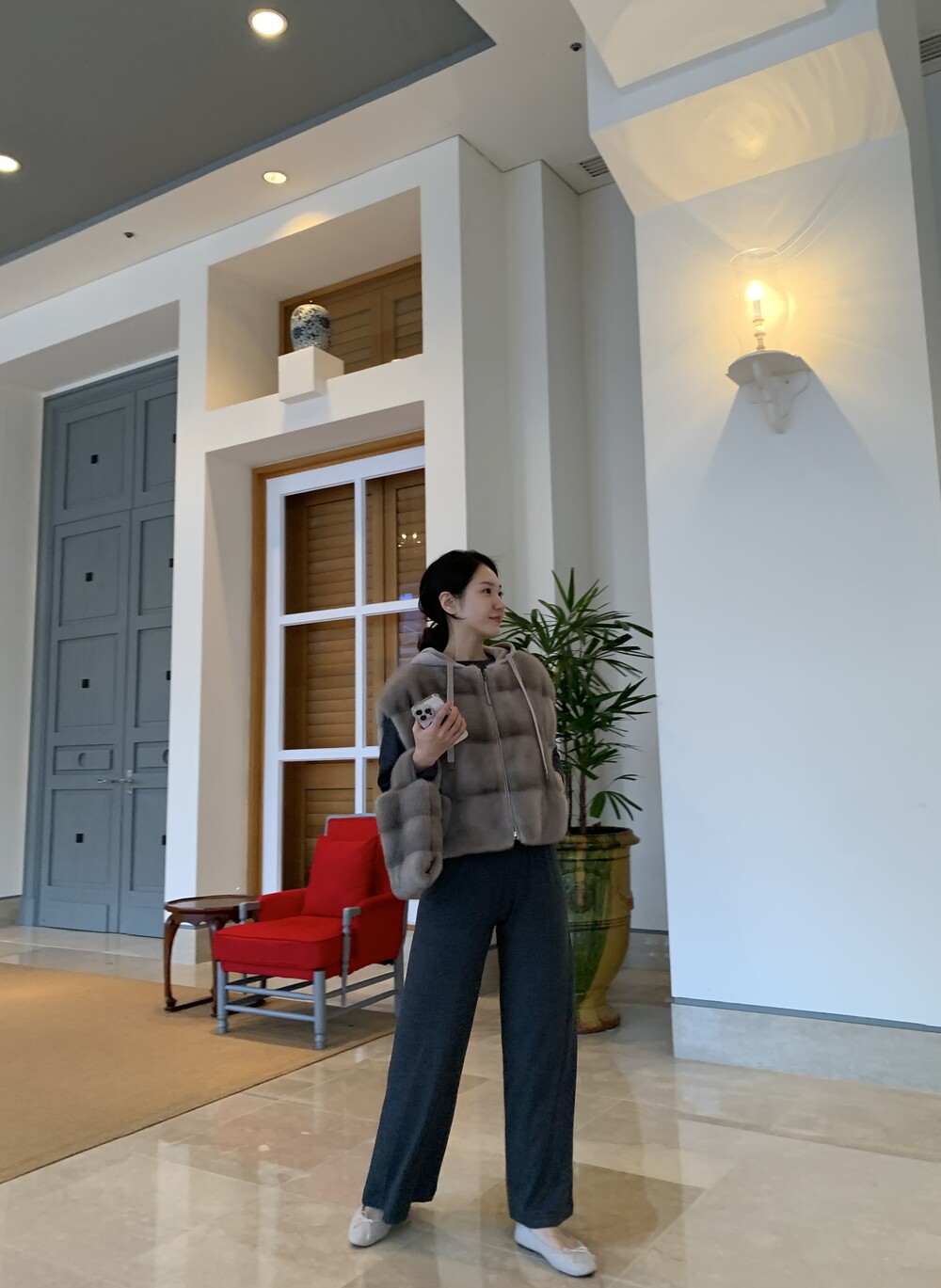 라운지 셋업에 요 밍크베스트 입고 갔었어요 저 :) 🤍🤍