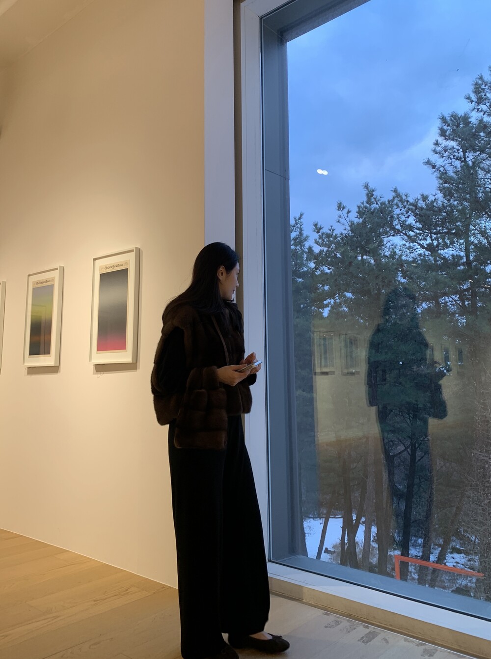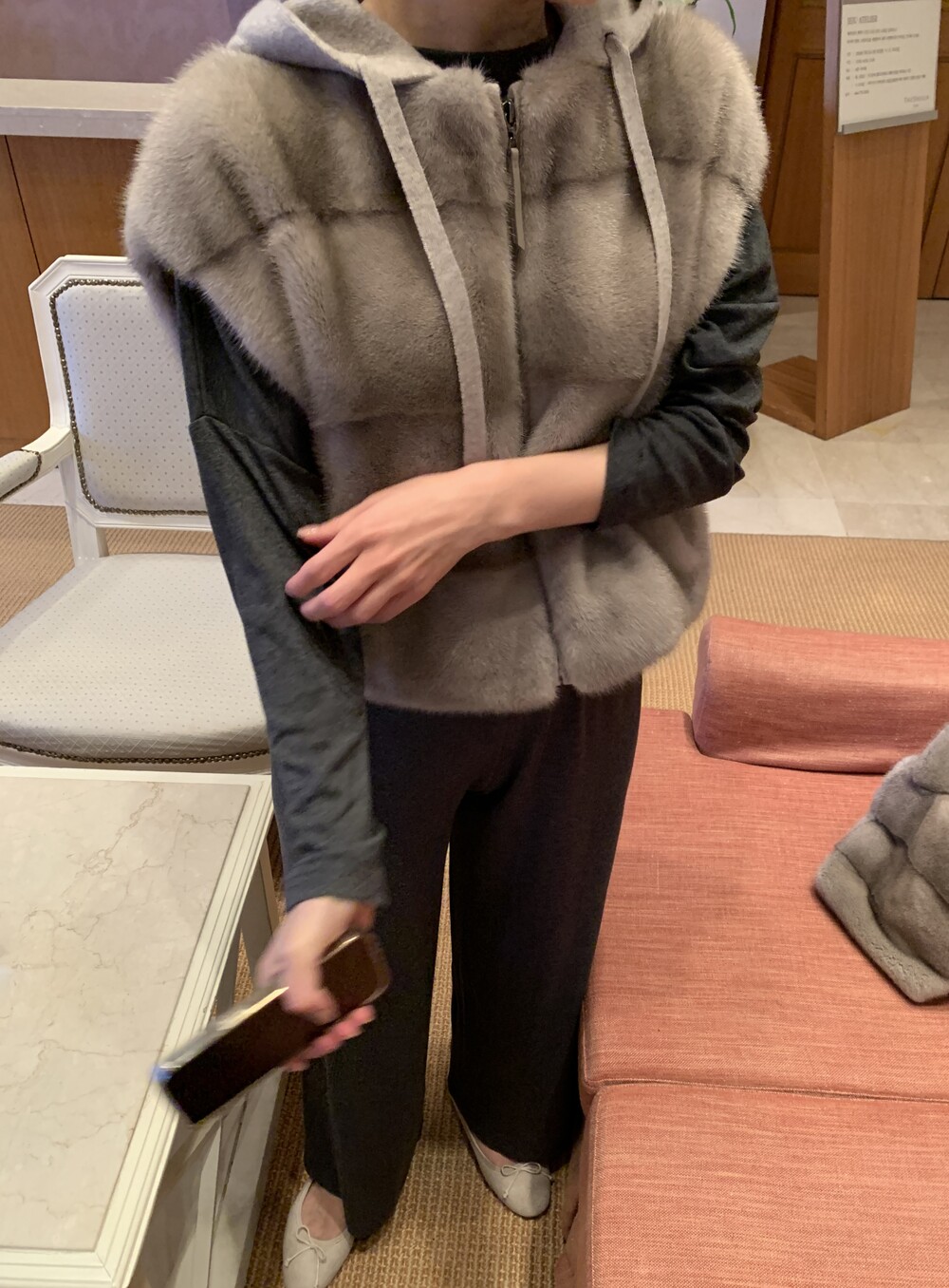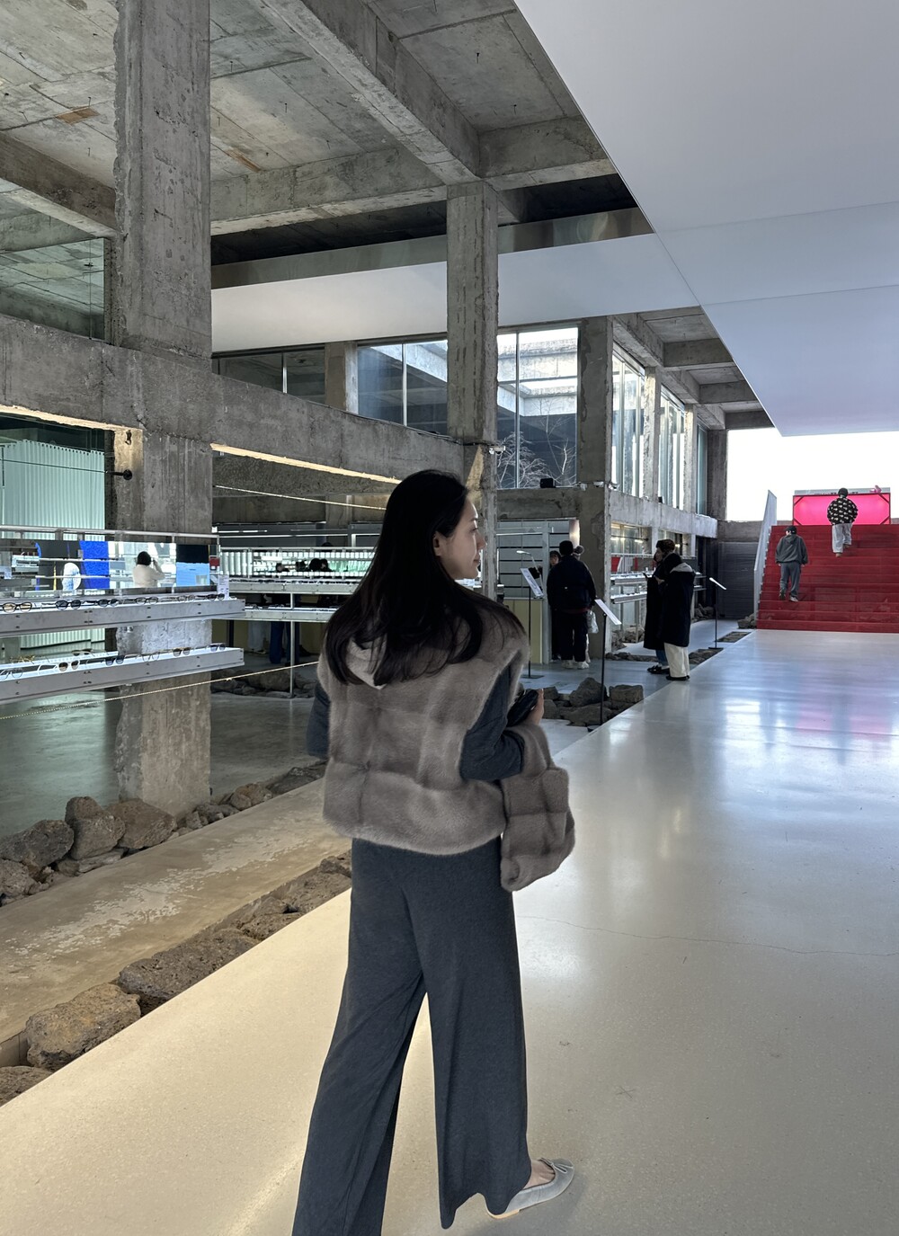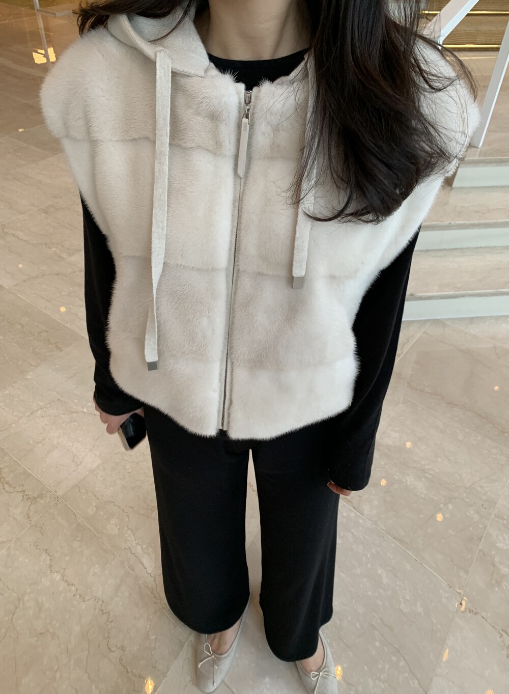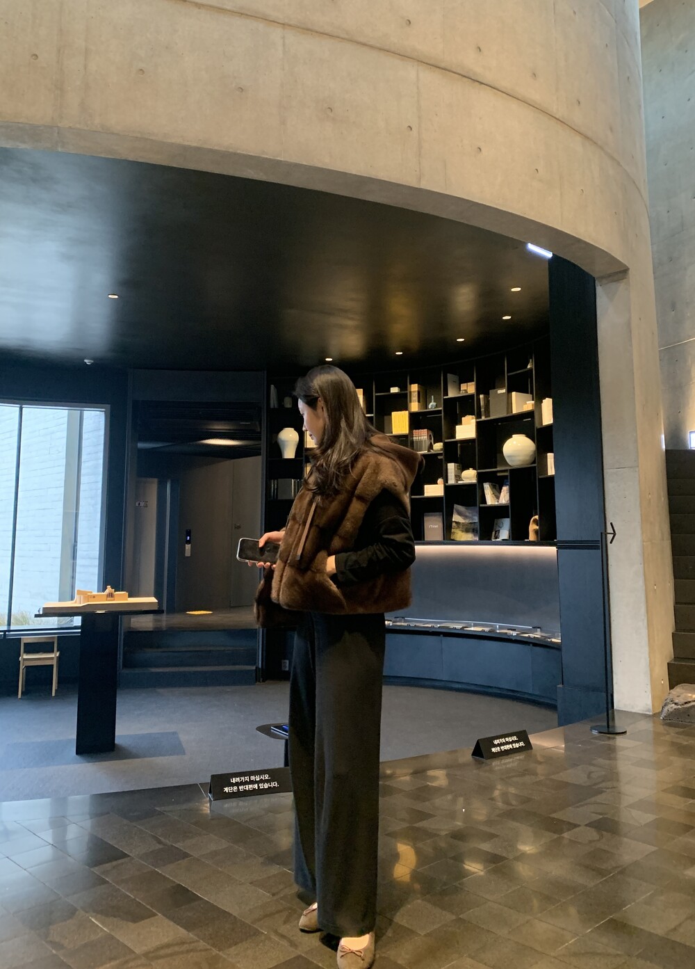 라운지 셋업에 요 밍크베스트 입고 갔었어요 저 :) 🤍🤍