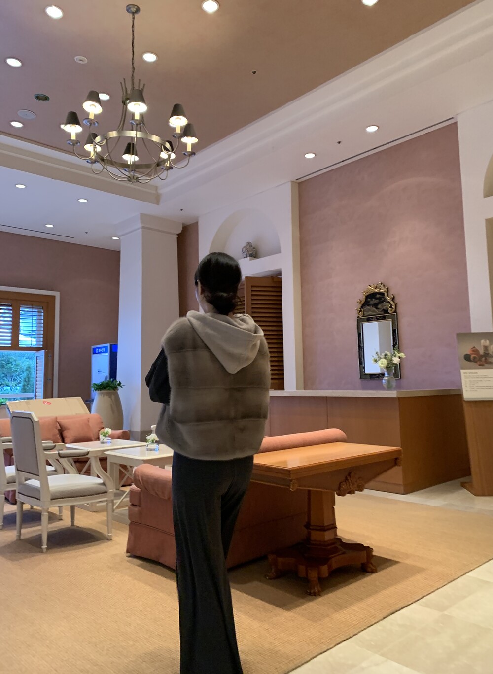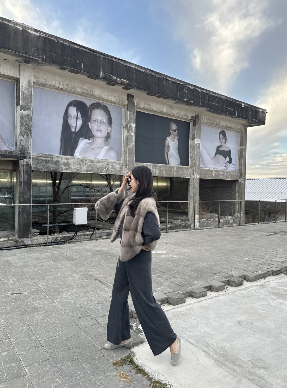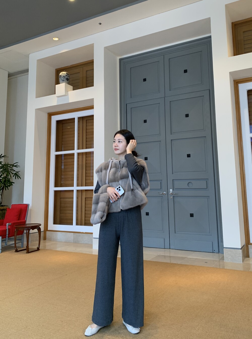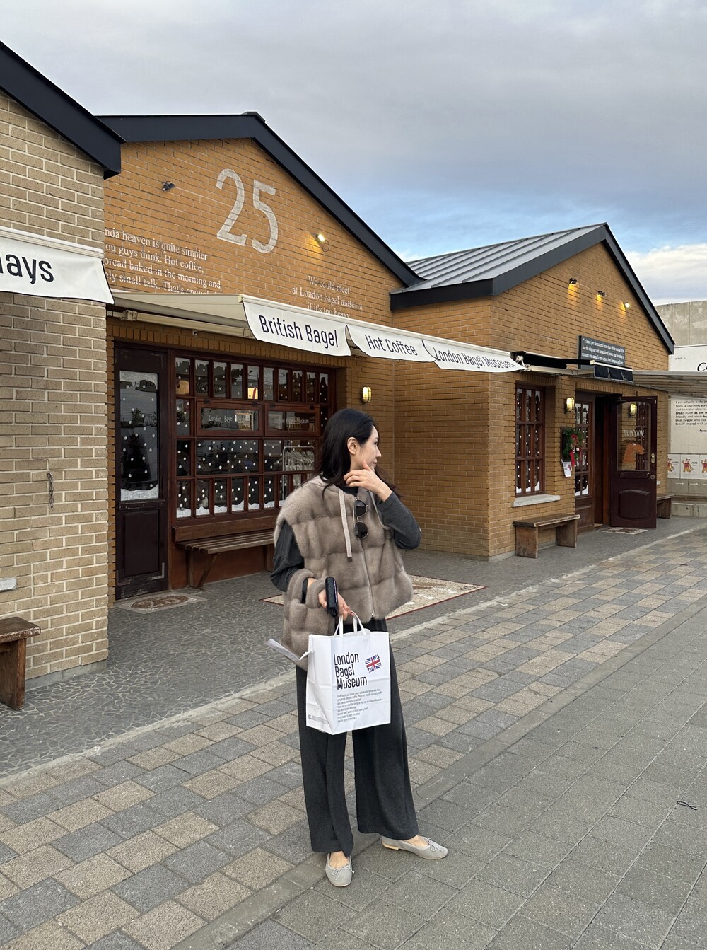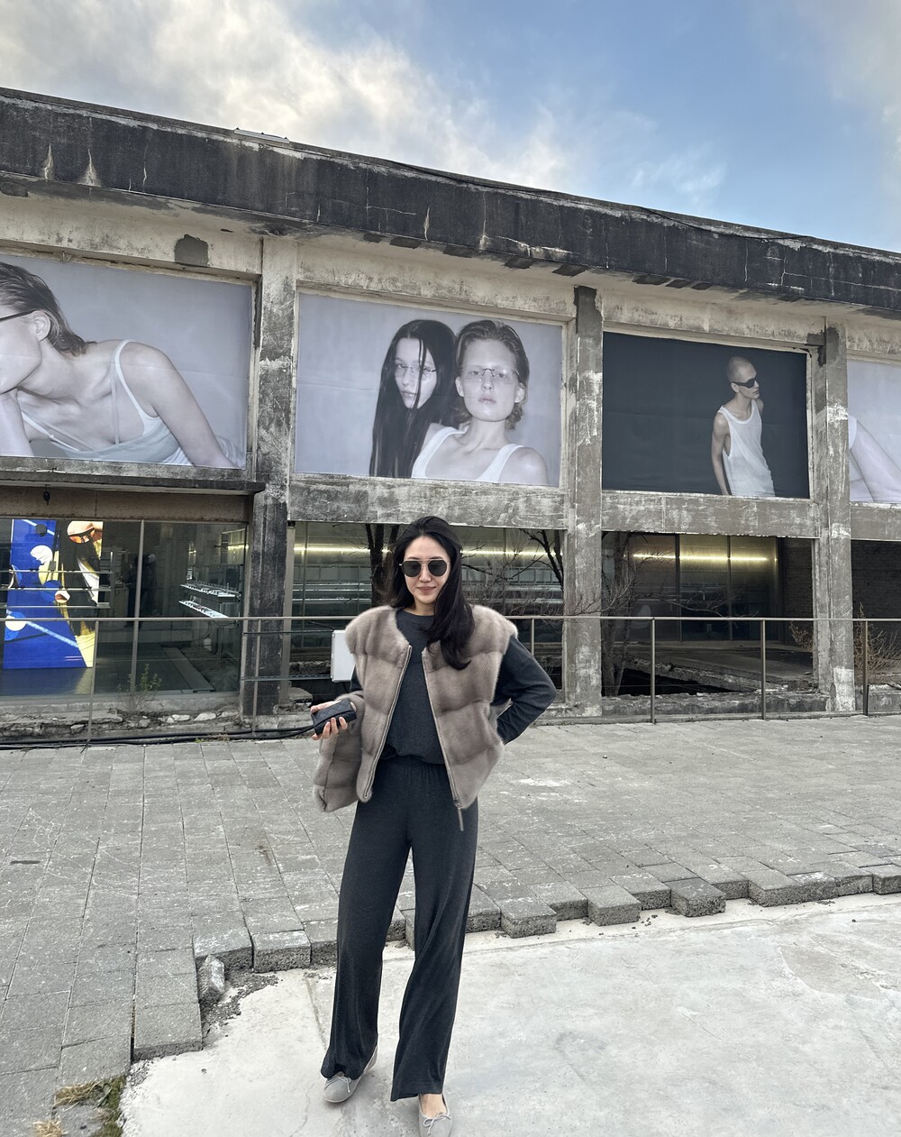라운지 셋업에 요 밍크베스트 입고 갔었어요 저 :) 🤍🤍