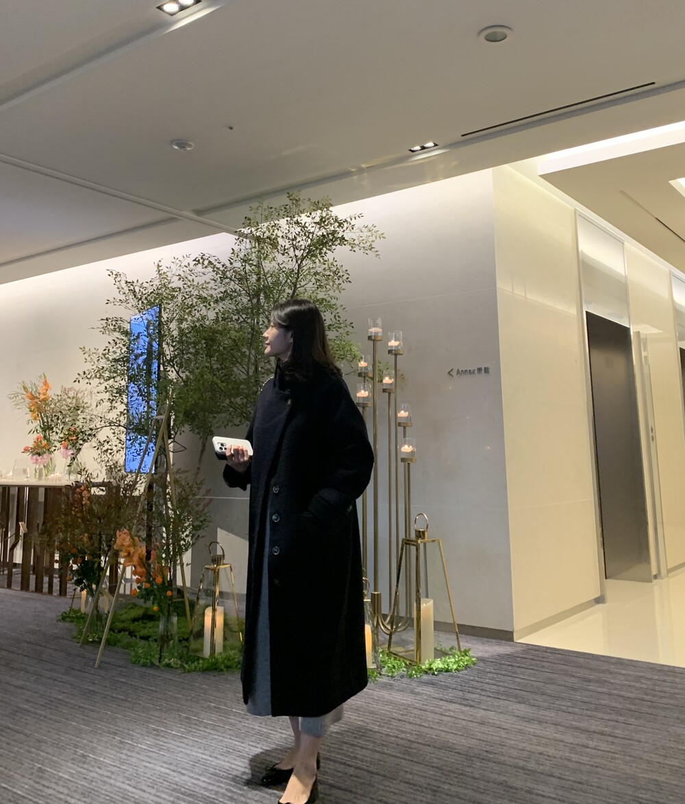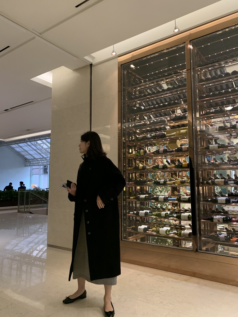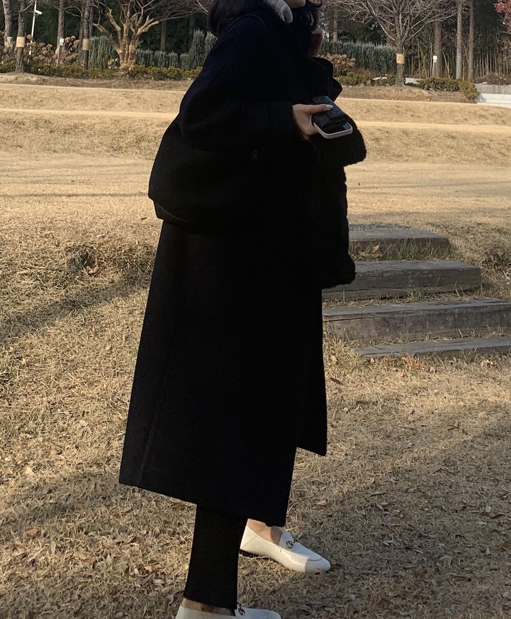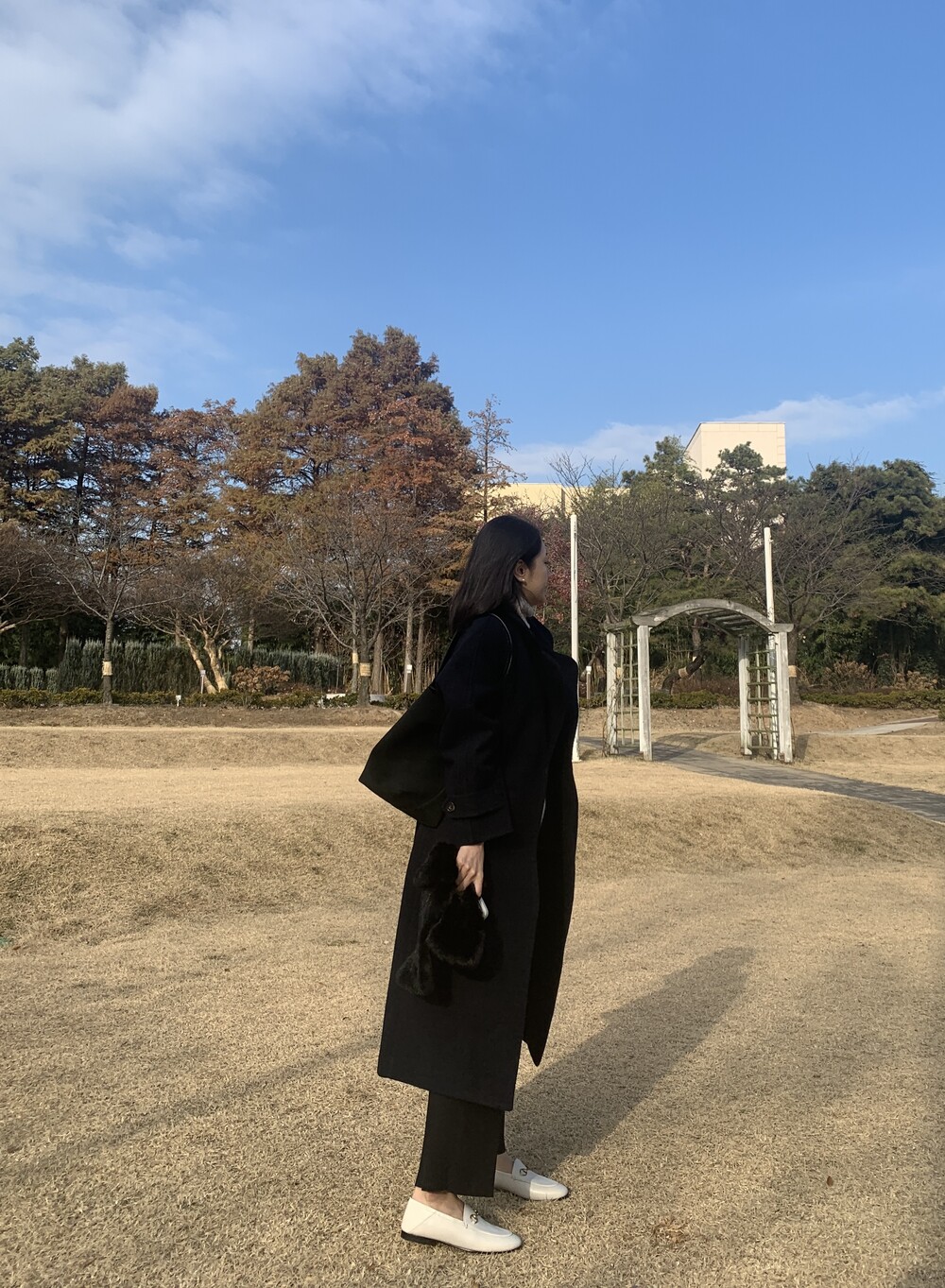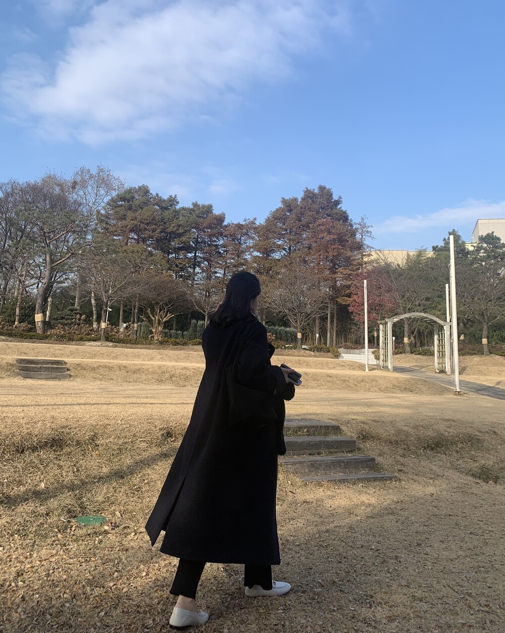 스키니한 팬츠에 롱부츠 신고 요 코트 입은 날도