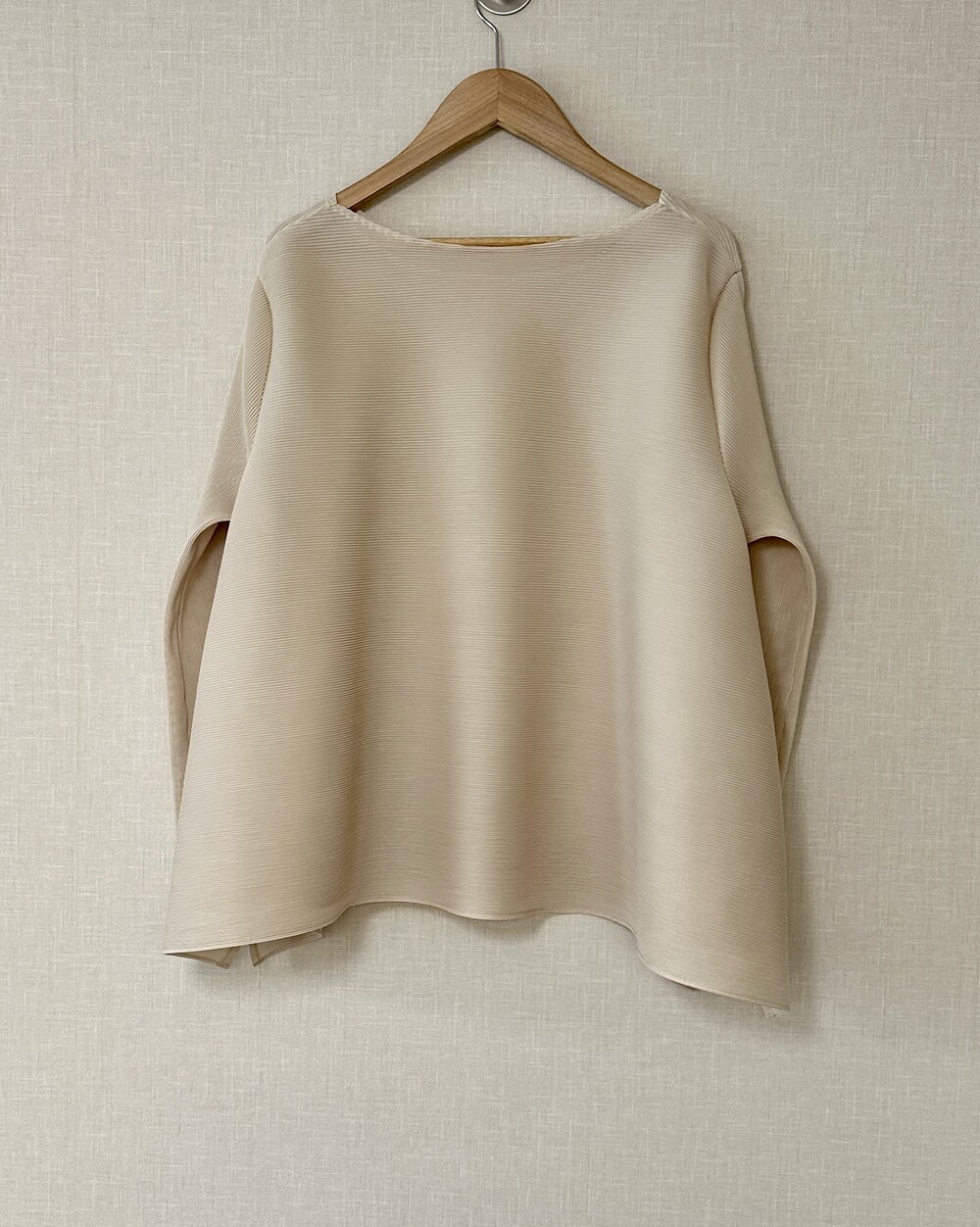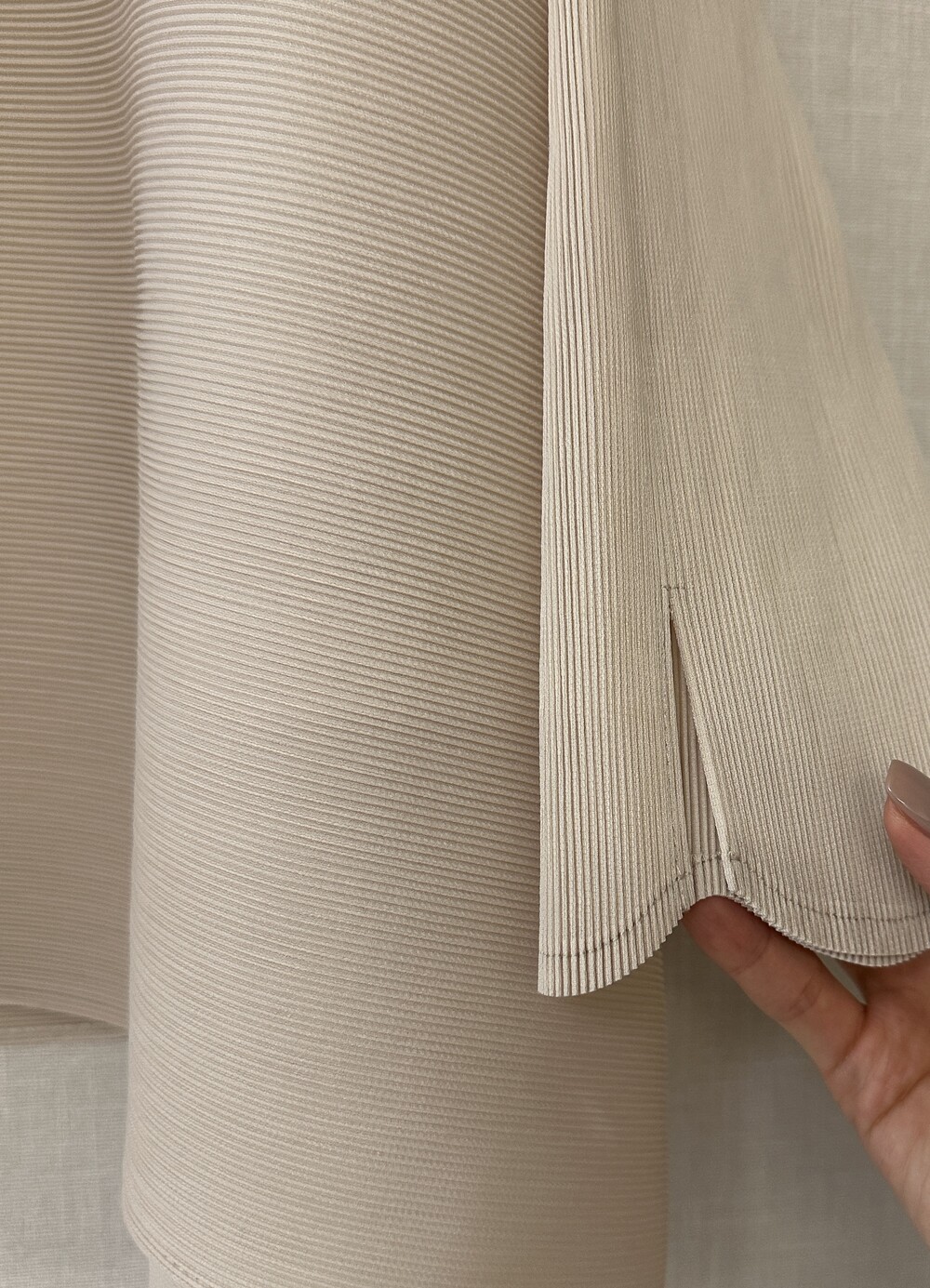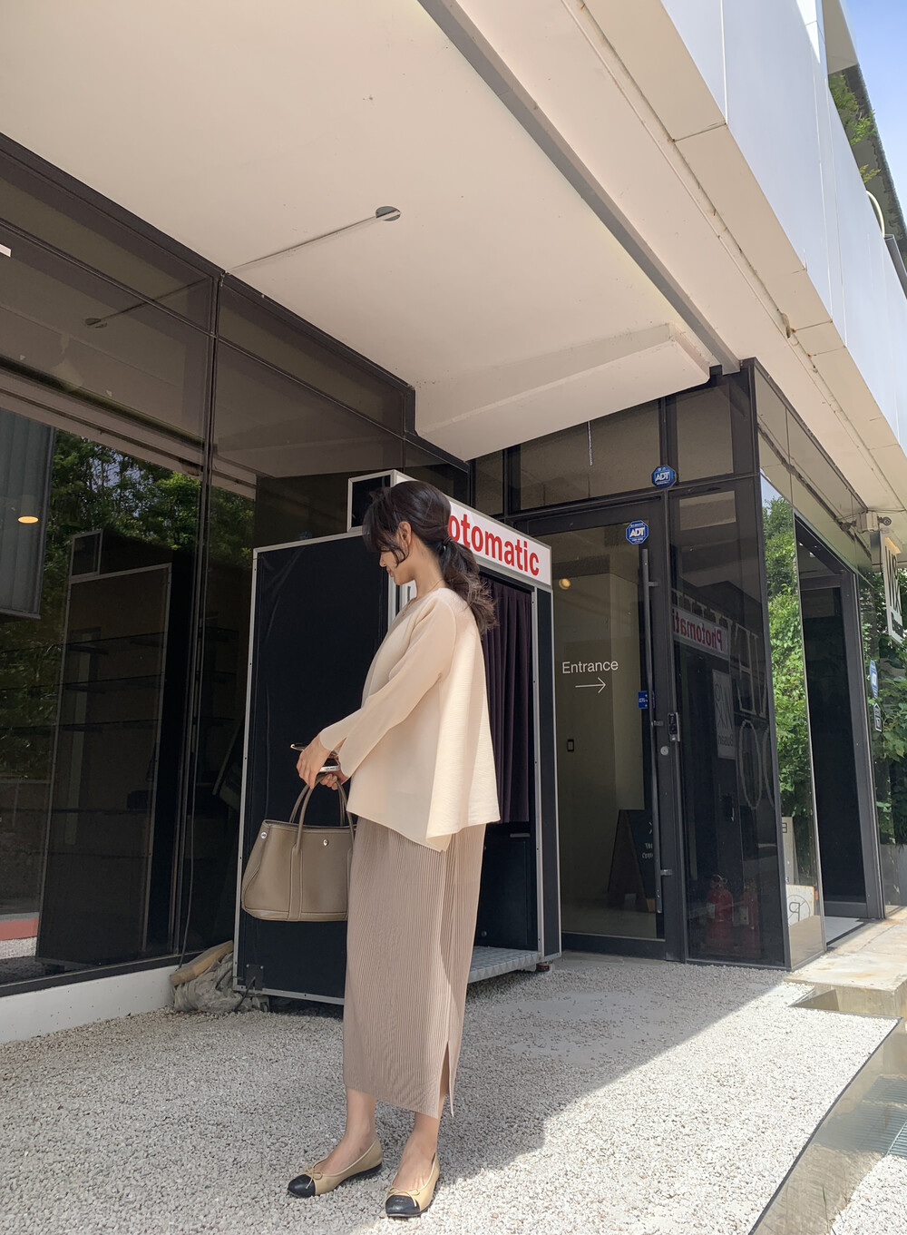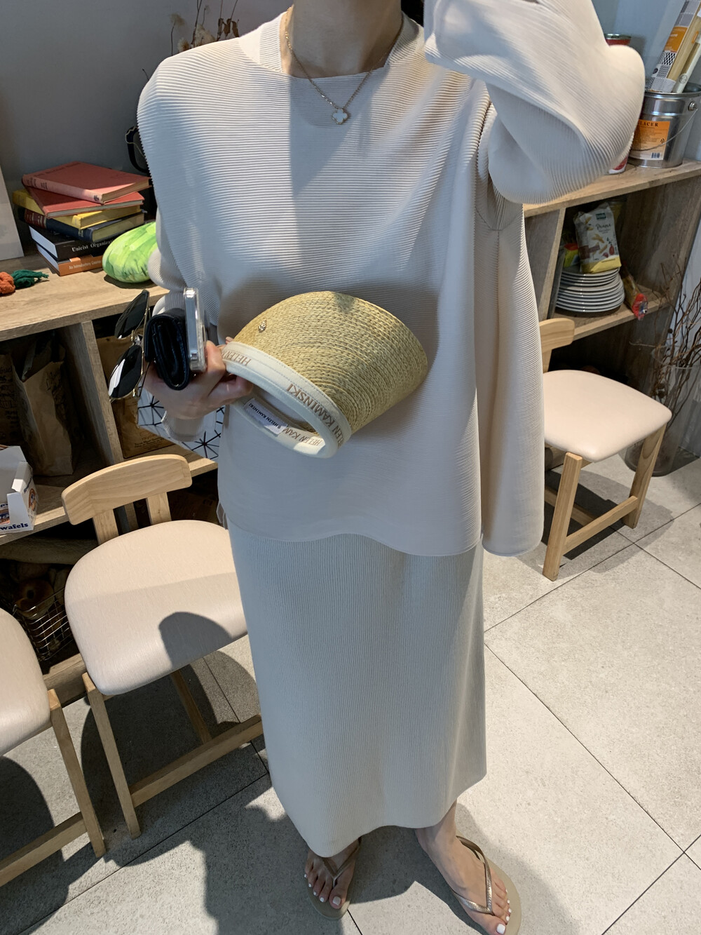 pleats flare top (beige) + pleats mist camisole (ivory) + bold-pleats basic skirt (mocha)