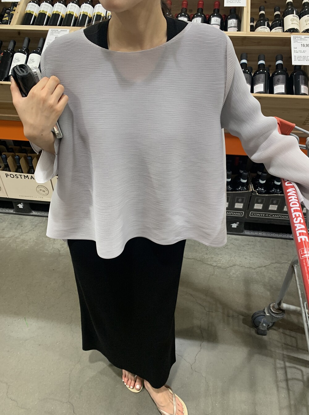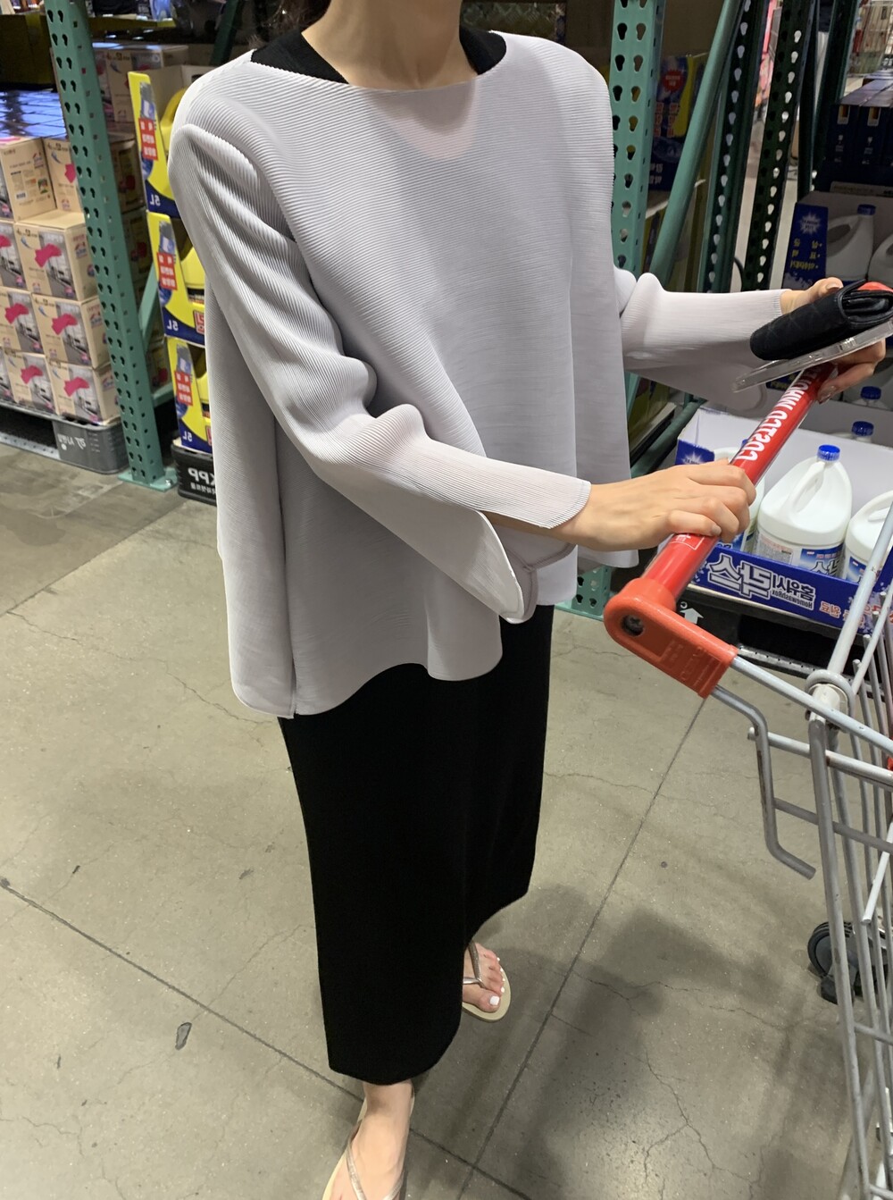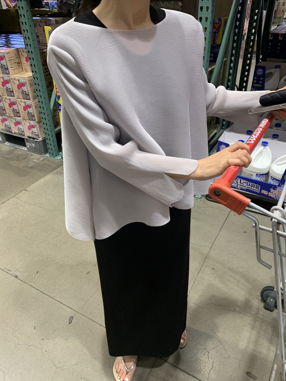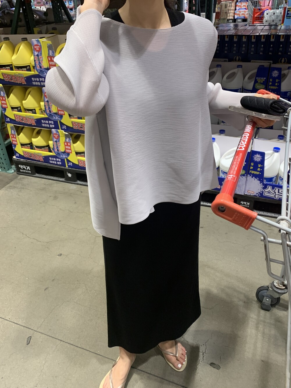 pleats flare top (lightgrey) + ribbed short-sleeve knitops (black)
