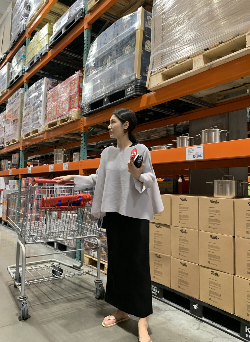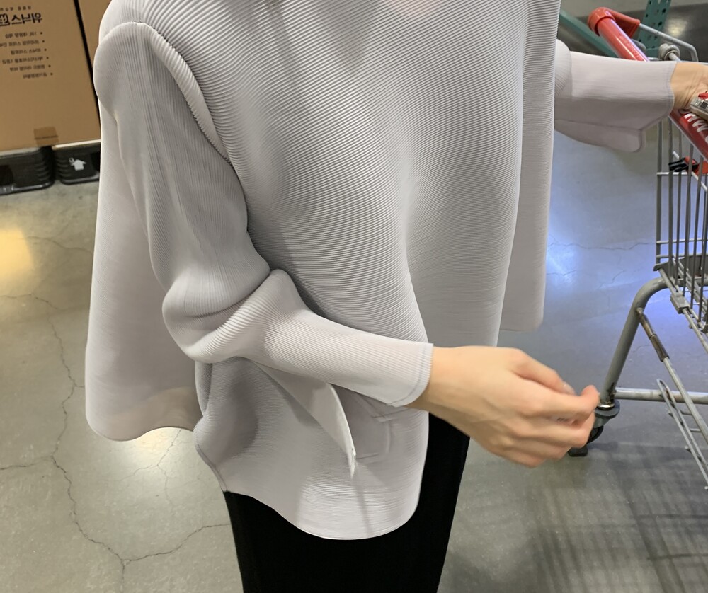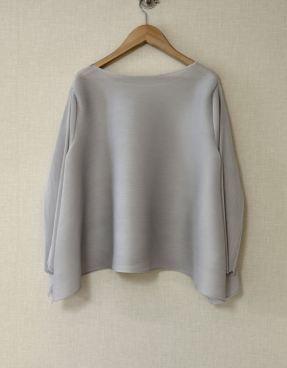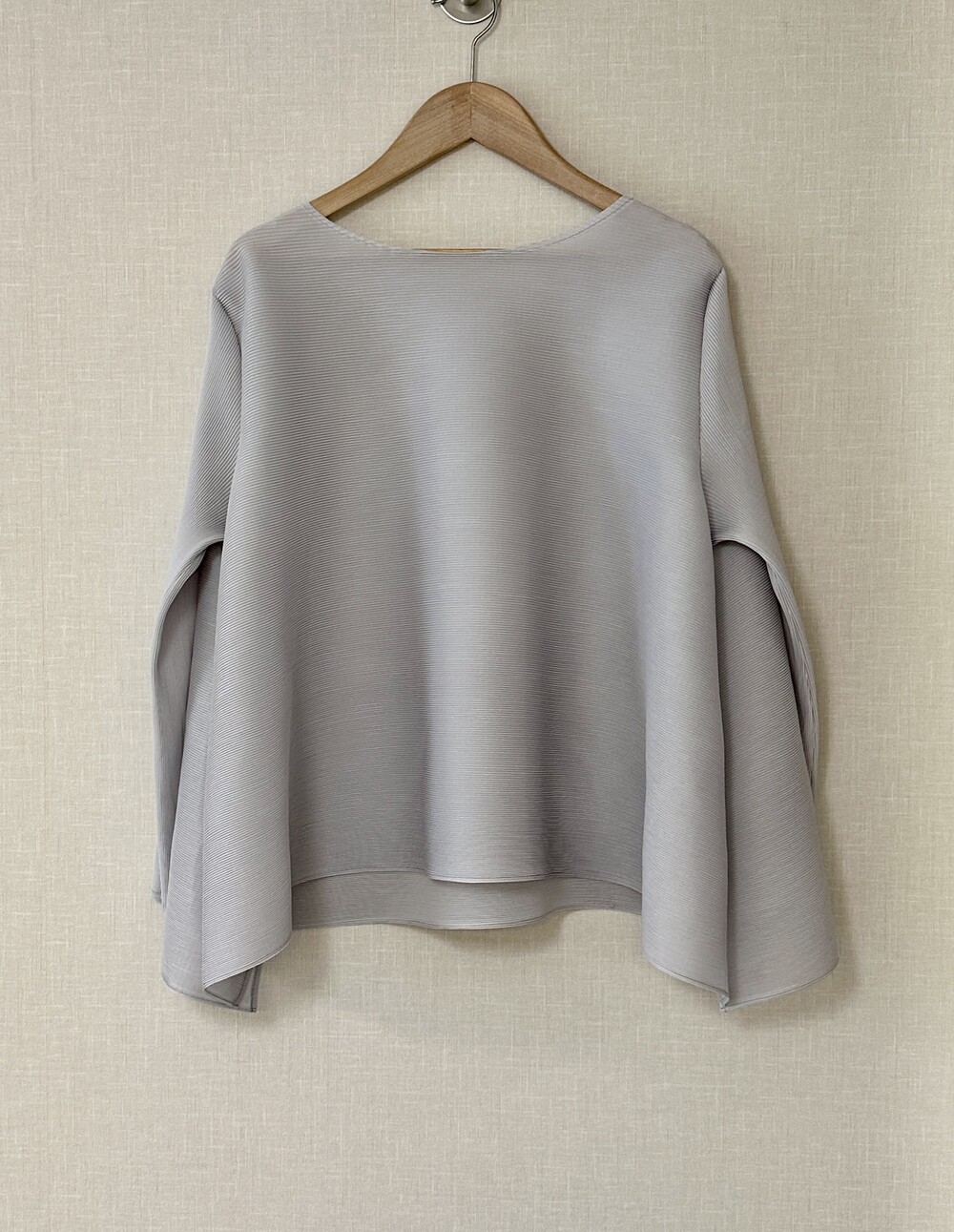 pleats flare top (lightgrey) + ribbed short-sleeve knitops (black)