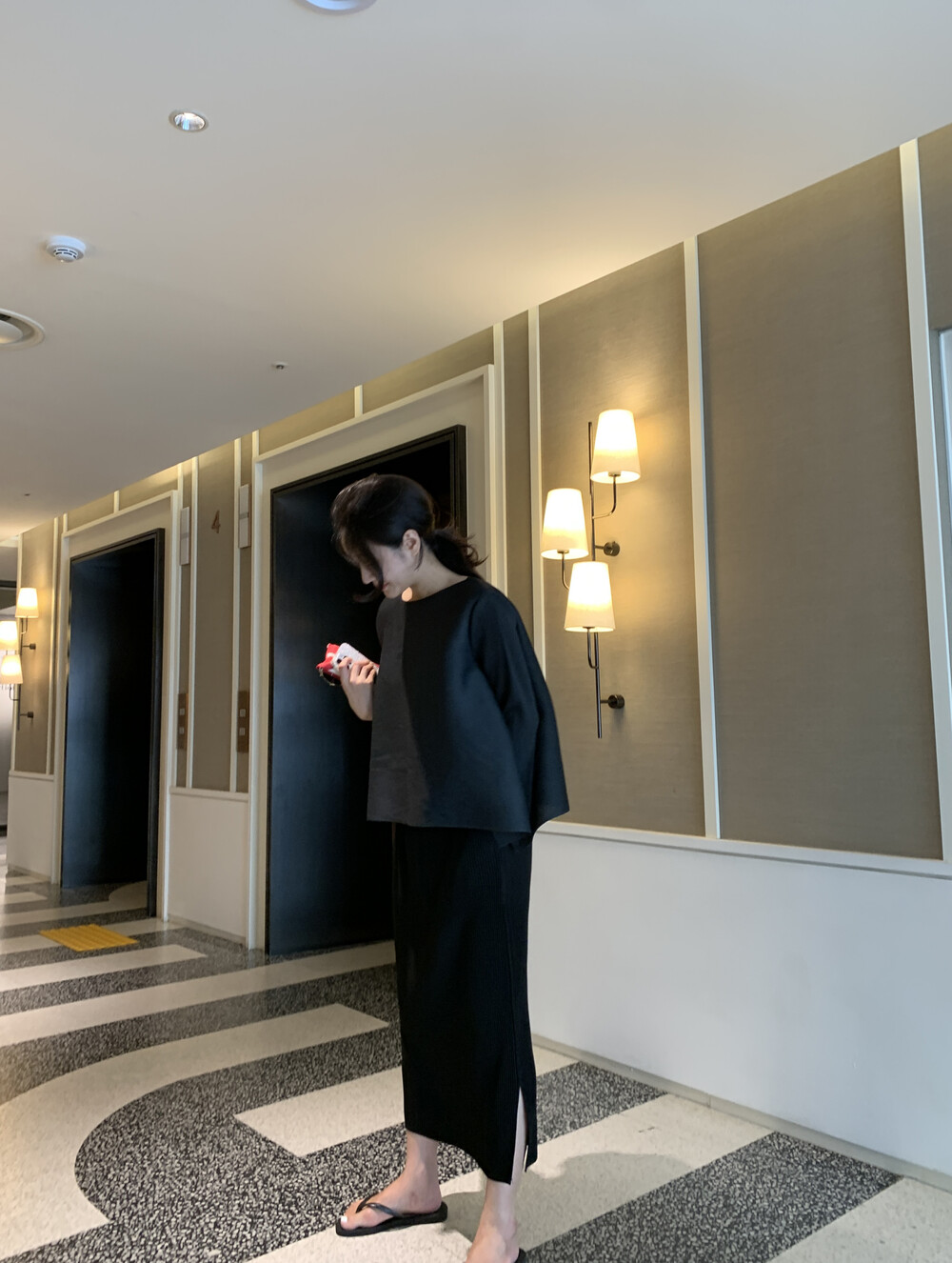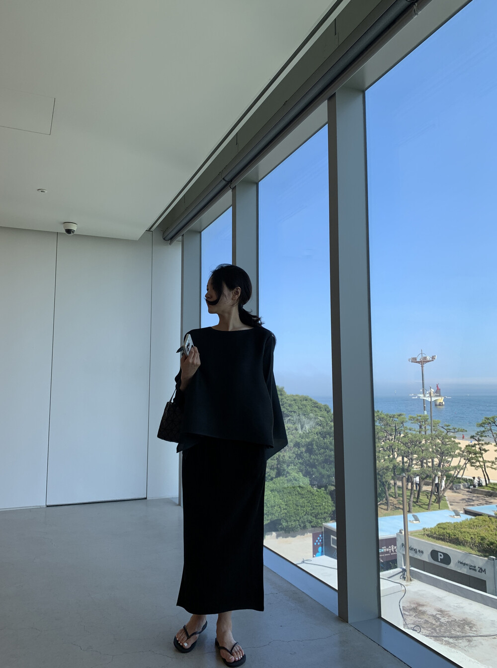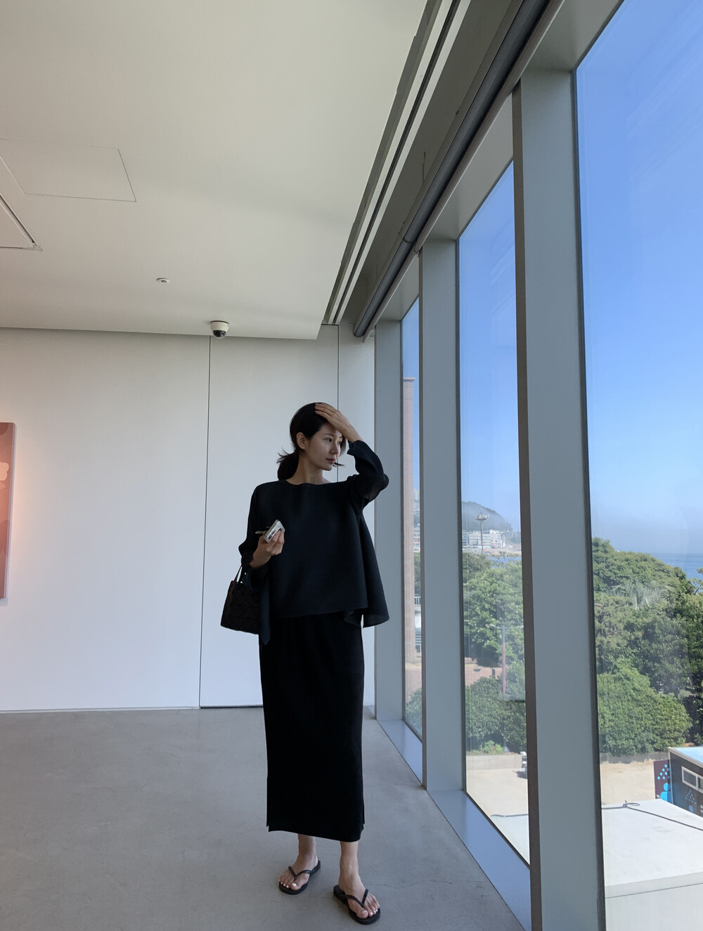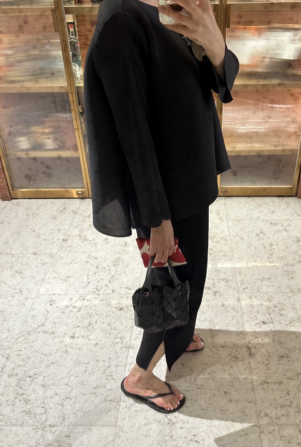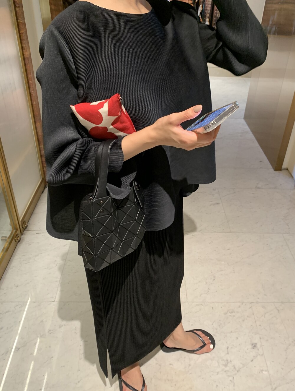 pleats flare top (ashblack) + pleats mist camisole (black) + bold-pleats basic skirt (black)