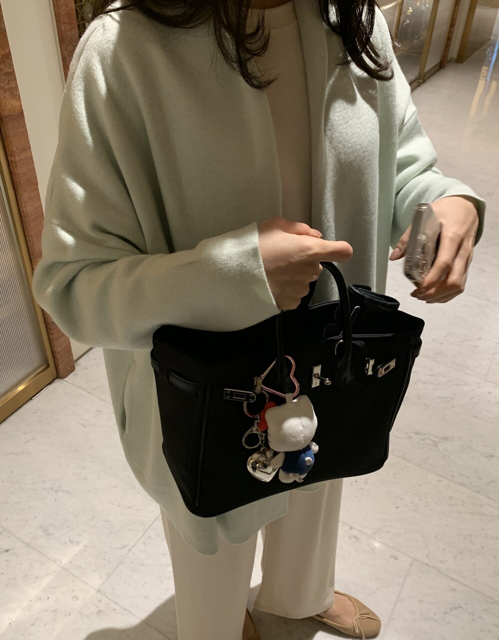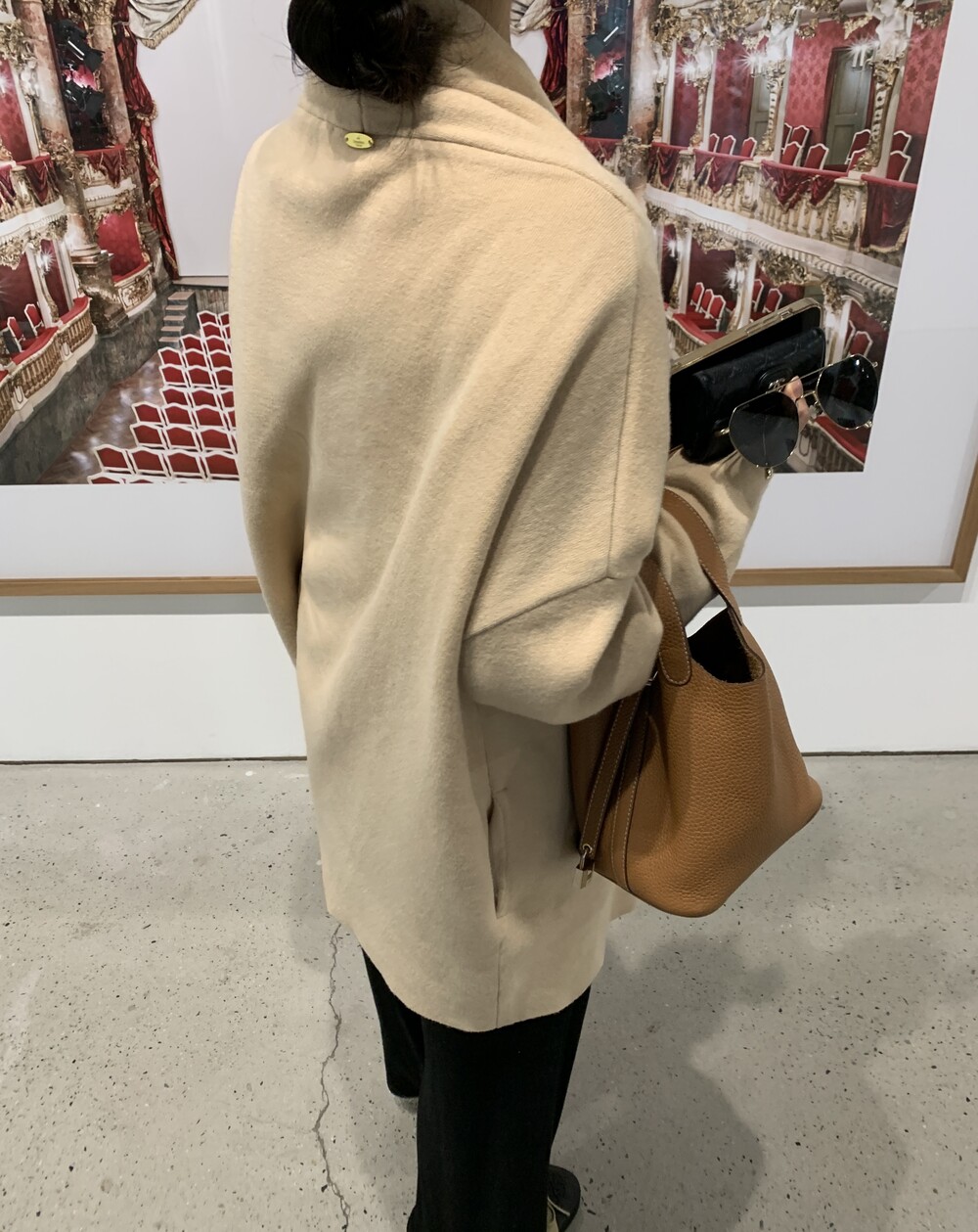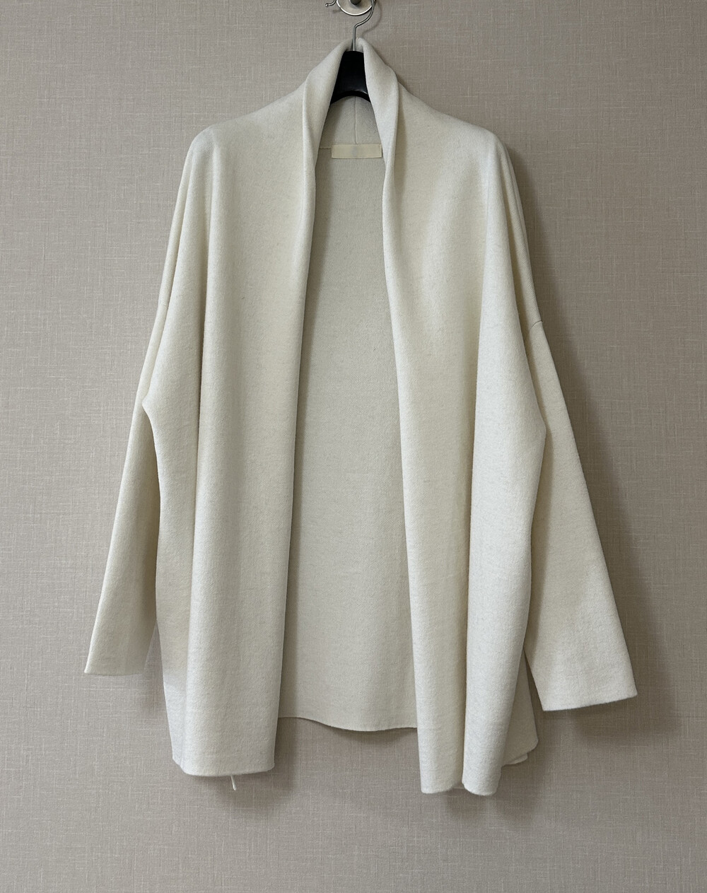 shawl half cardigan (ivory) + [made] lounge top&pants set (etoff) + suede flat shoes (beige) + mink petit bag (fullskin/deepbrown)