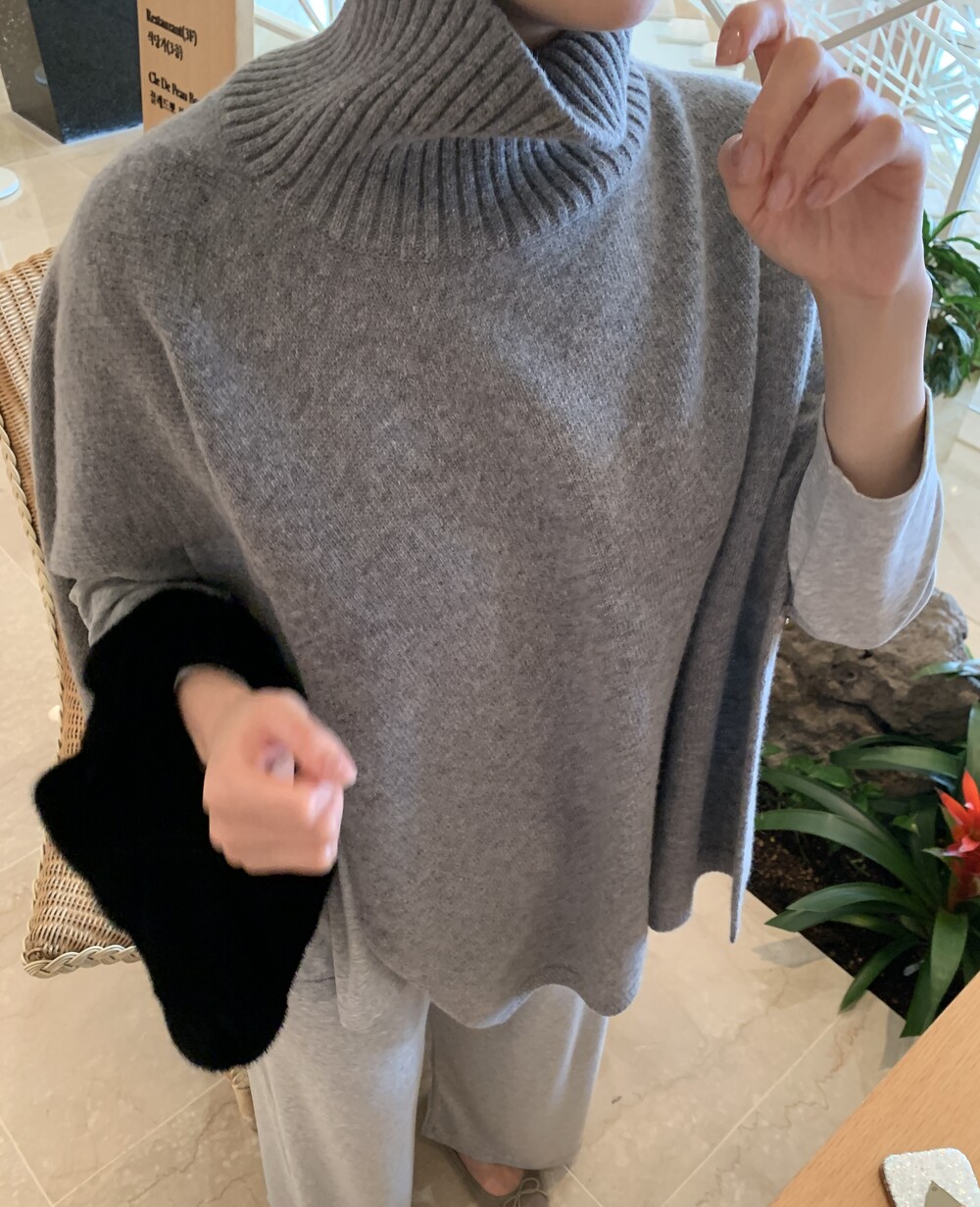 판초 스타일의 터틀넥 숄입니다.