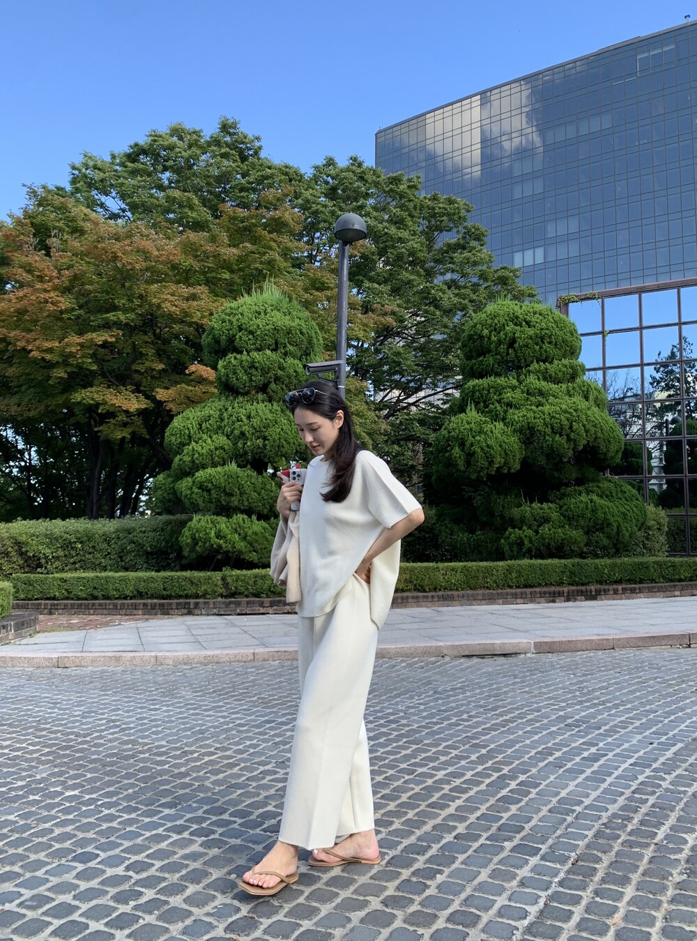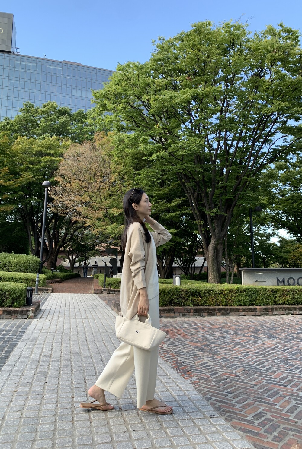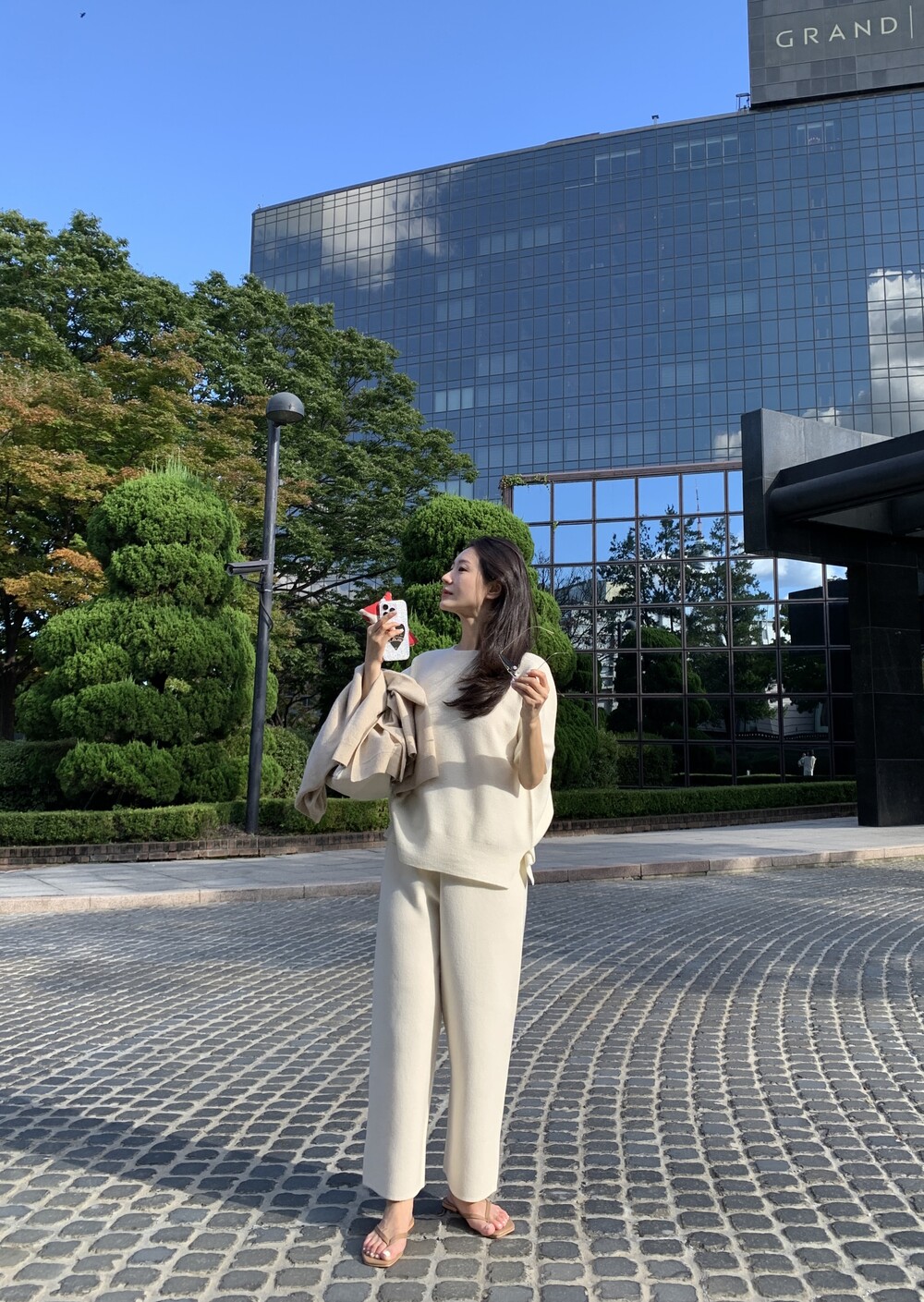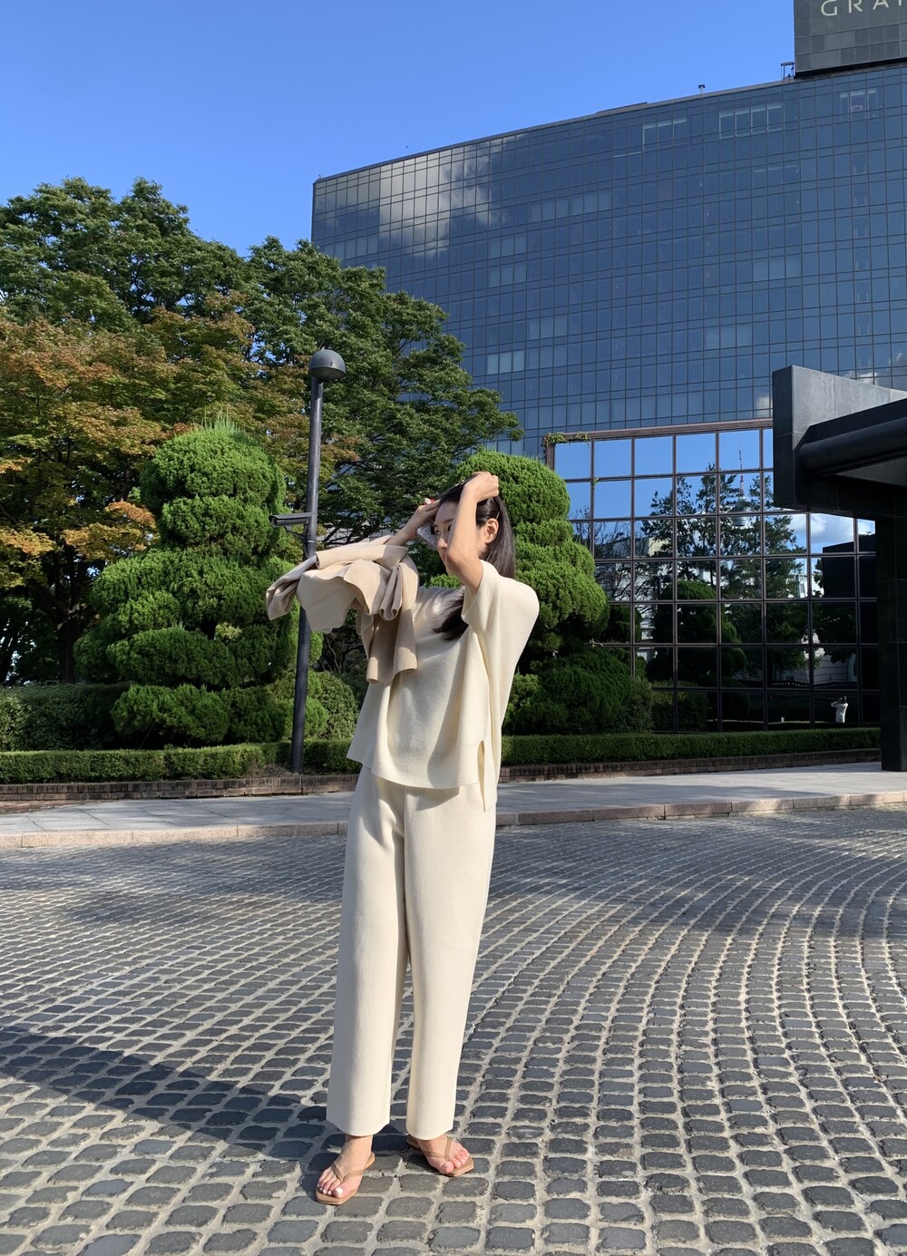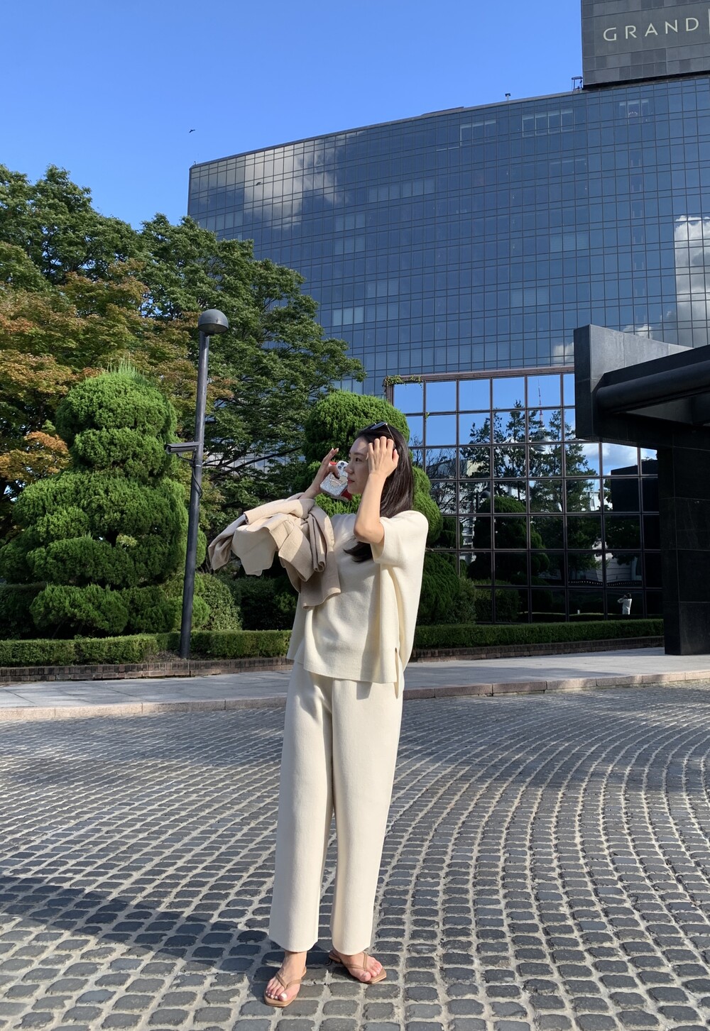 wholegarment loose knit (ivory) + [f/w] must knit pants (ivory)
