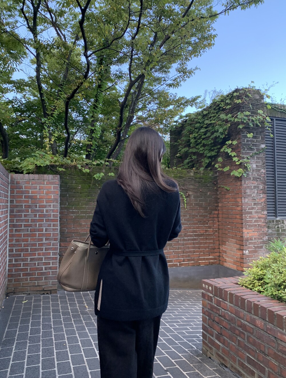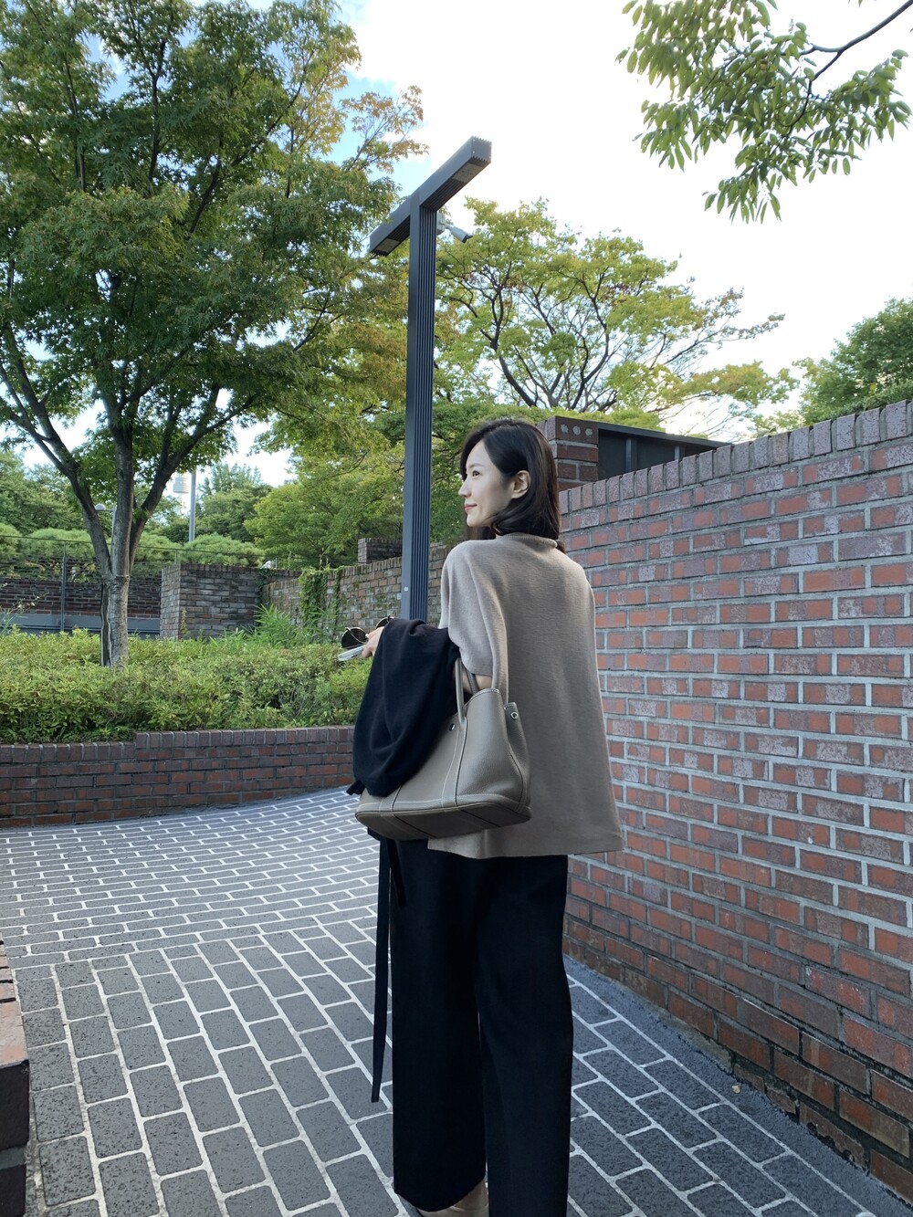 autumn belt cardigan (black) + wholegarment loose knit (mochabiege) + [f/w] must knit pants (black)