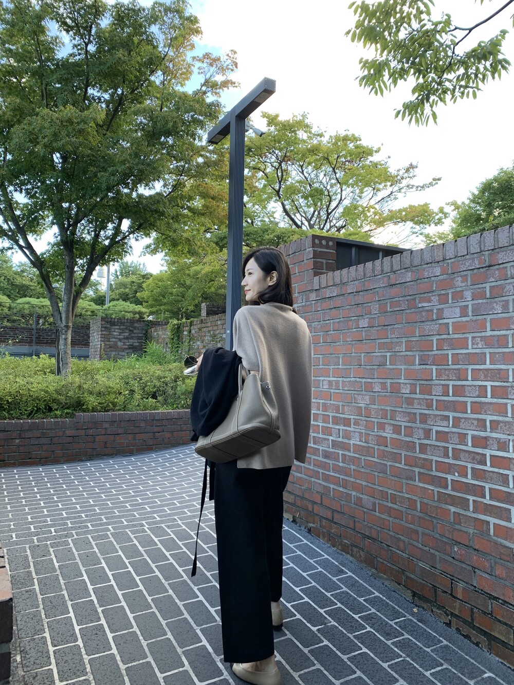 wholegarment loose knit (mochabeige) + [f/w] must knit pants (black)